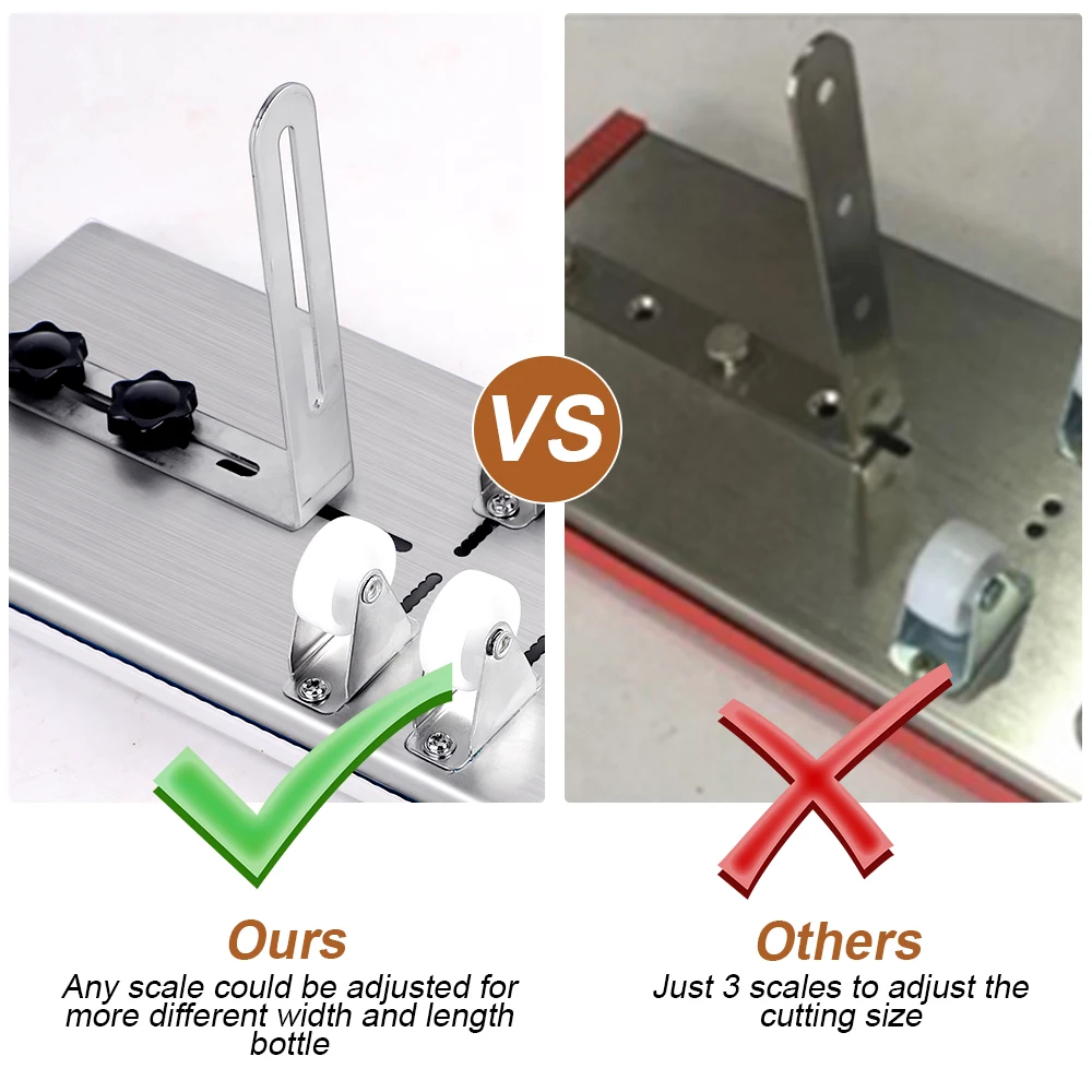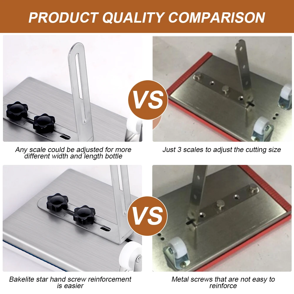 Простота в использовании: Положите бутылку на резак для бутылок, установите постоянное среднее давление и поверните стеклянную бутылку
