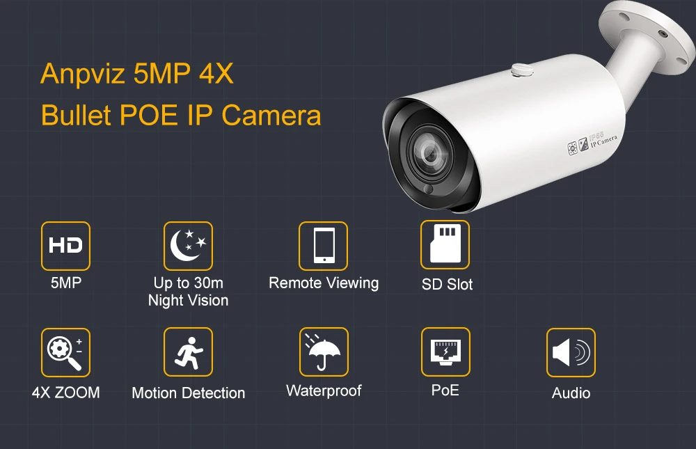 Эта камера видеонаблюдения 5 Мп имеет встроенную функцию одностороннего аудио. Возьмите голос вокруг и получите четкий голос на другой стороне.