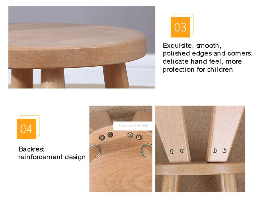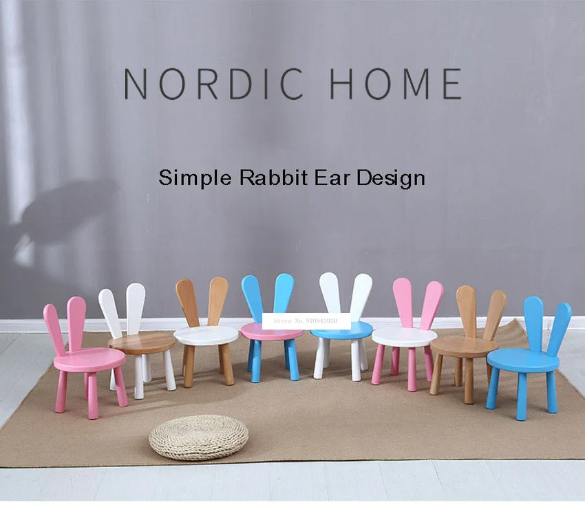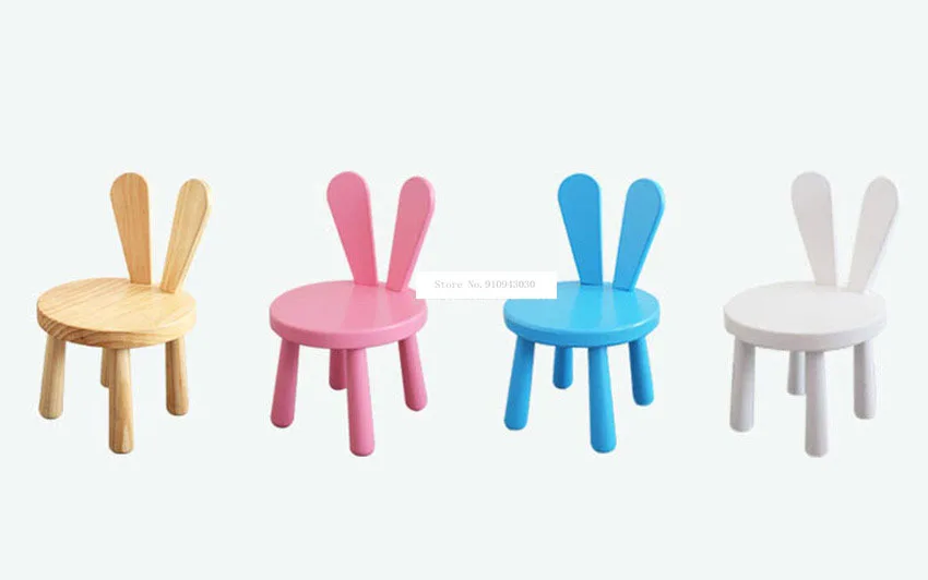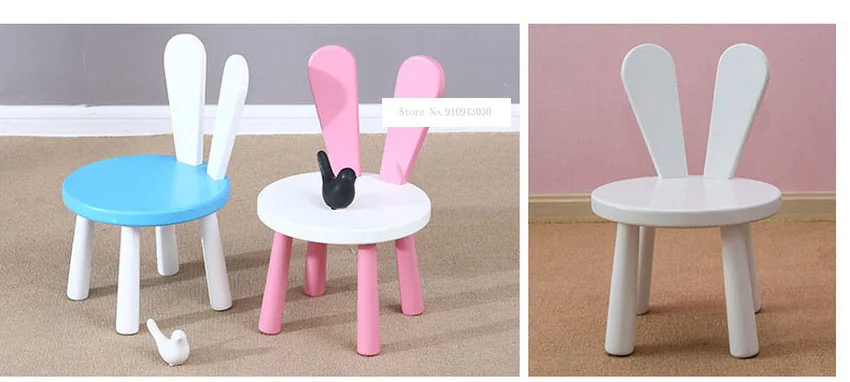 Name: Rabbit solid wood children's stool Style: A/B A: stool without seat cushion B: stool with seat cushion (Optional) Wood material: Beech wood /Pine wood (Optional) Color: White/Log/ Blue /Pink (Optional) Package included: 1x Rabbit solid wood children's stool
