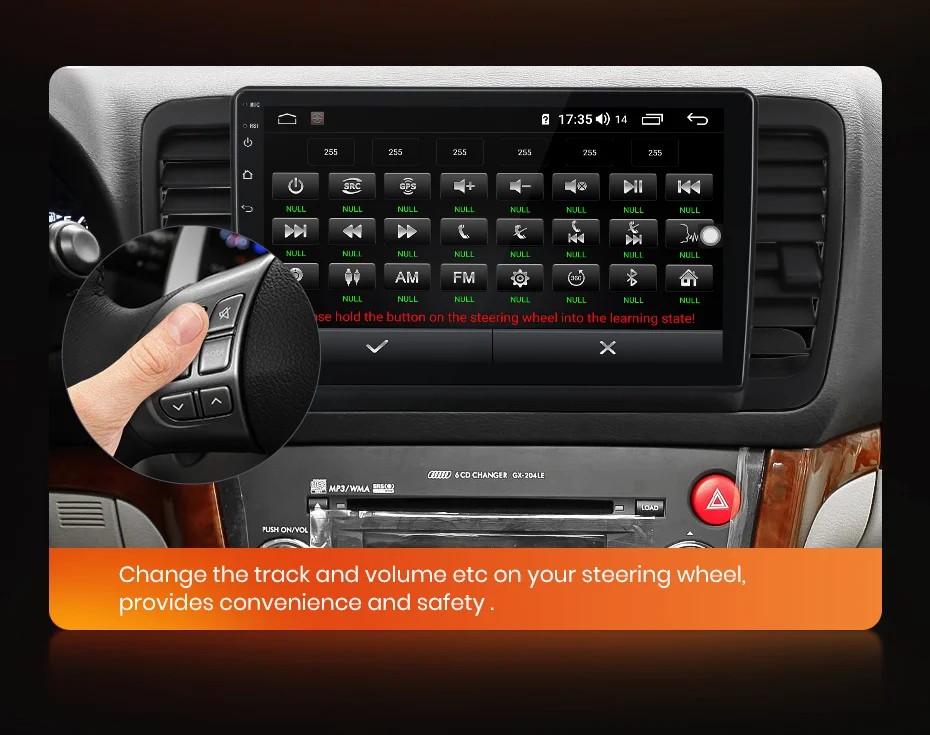 Пожалуйста, нажмите кнопку на рулевом колесе, и в то же время нажмите кнопку на экране, чтобы соответствовать, это изменит цвет после соответствия.