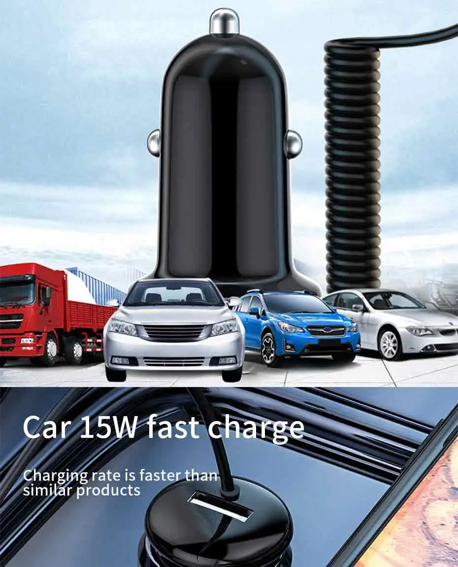1.15W car charger supporting 5V/3.4A high output, can fast charge all prevailing phones at the same time.