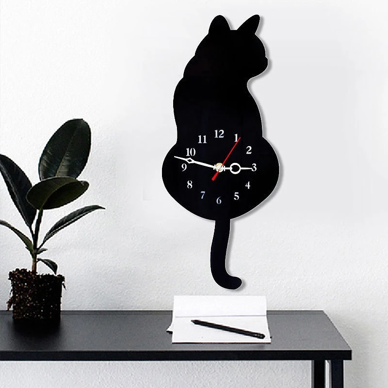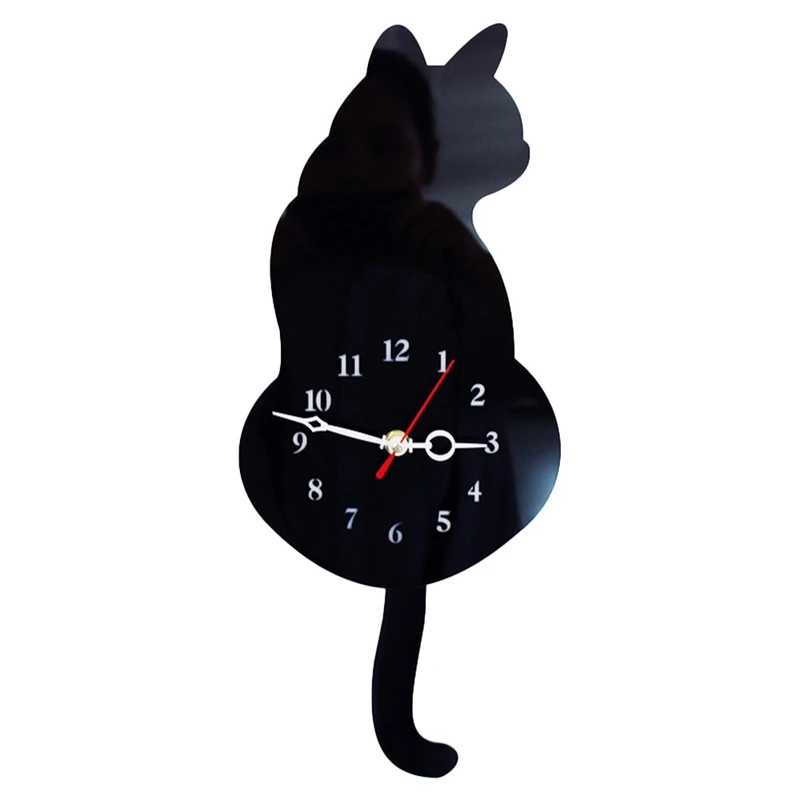 3D милый Кот настенные часы Wag Tail Silence украшение дома подарок детям черный
