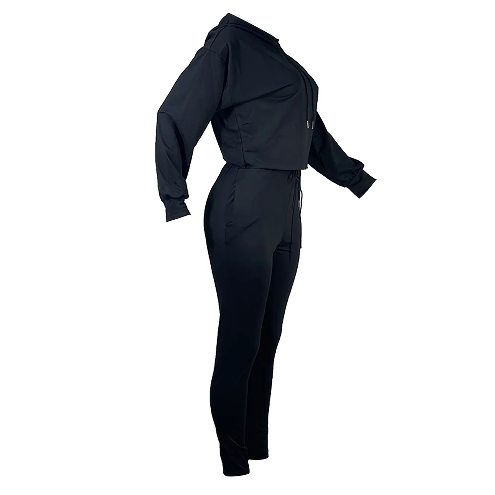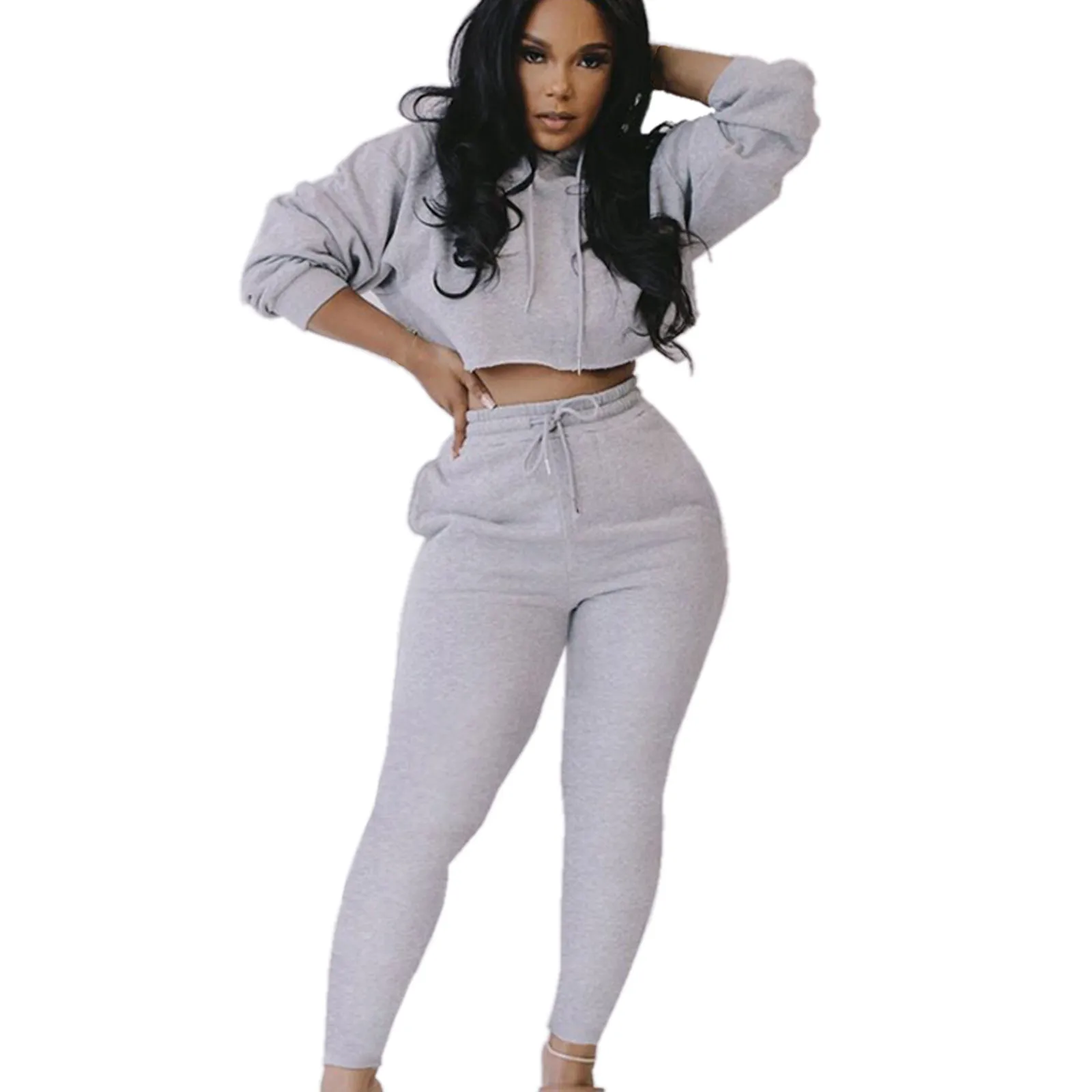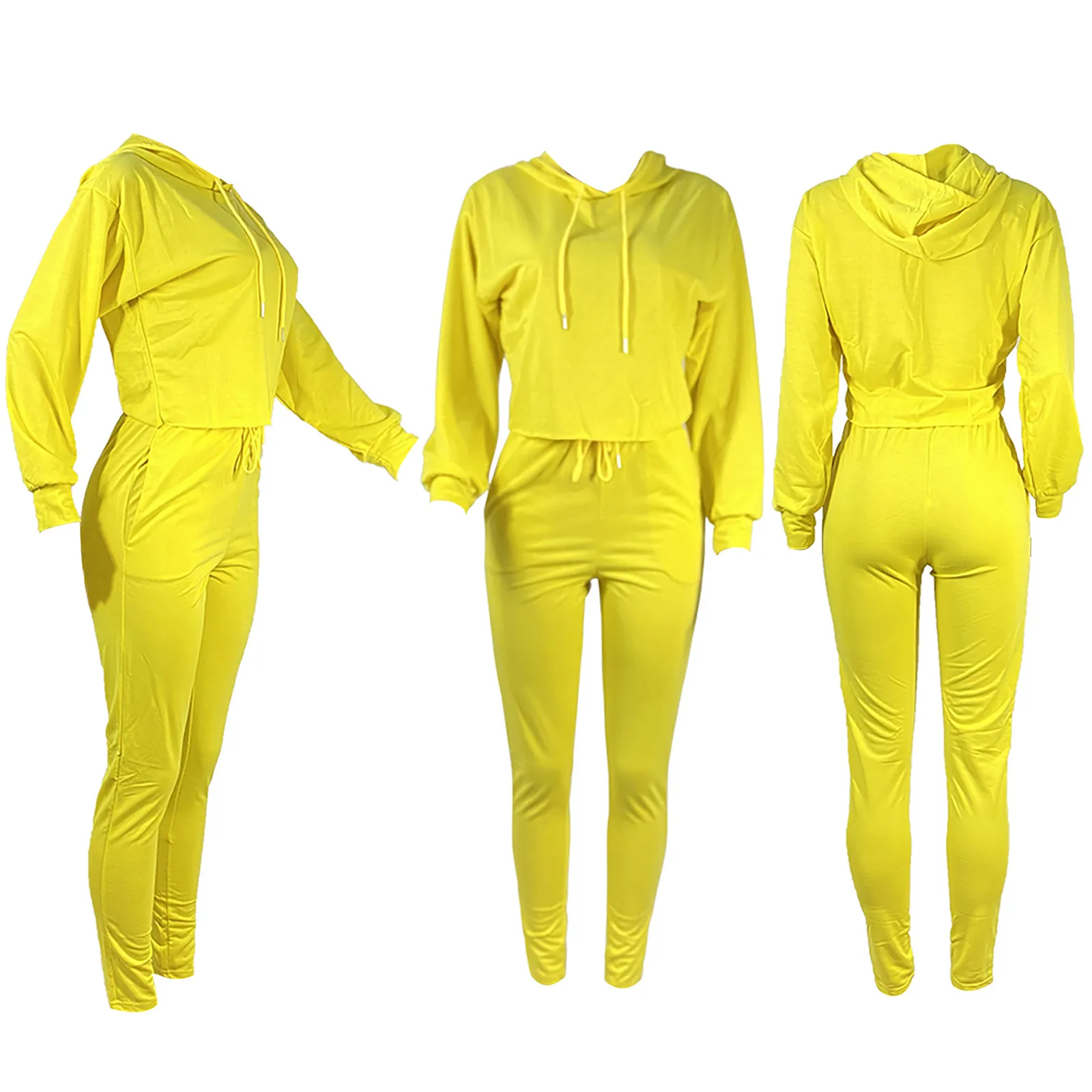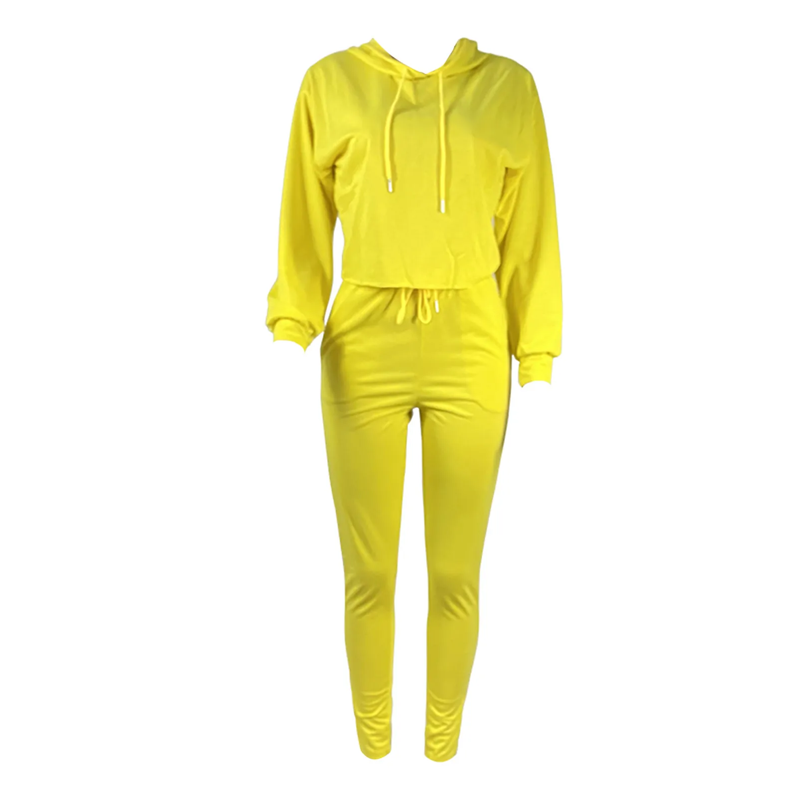 Женский модный пуловер с капюшоном и длинным рукавом, однотонные брюки, повседневный костюм