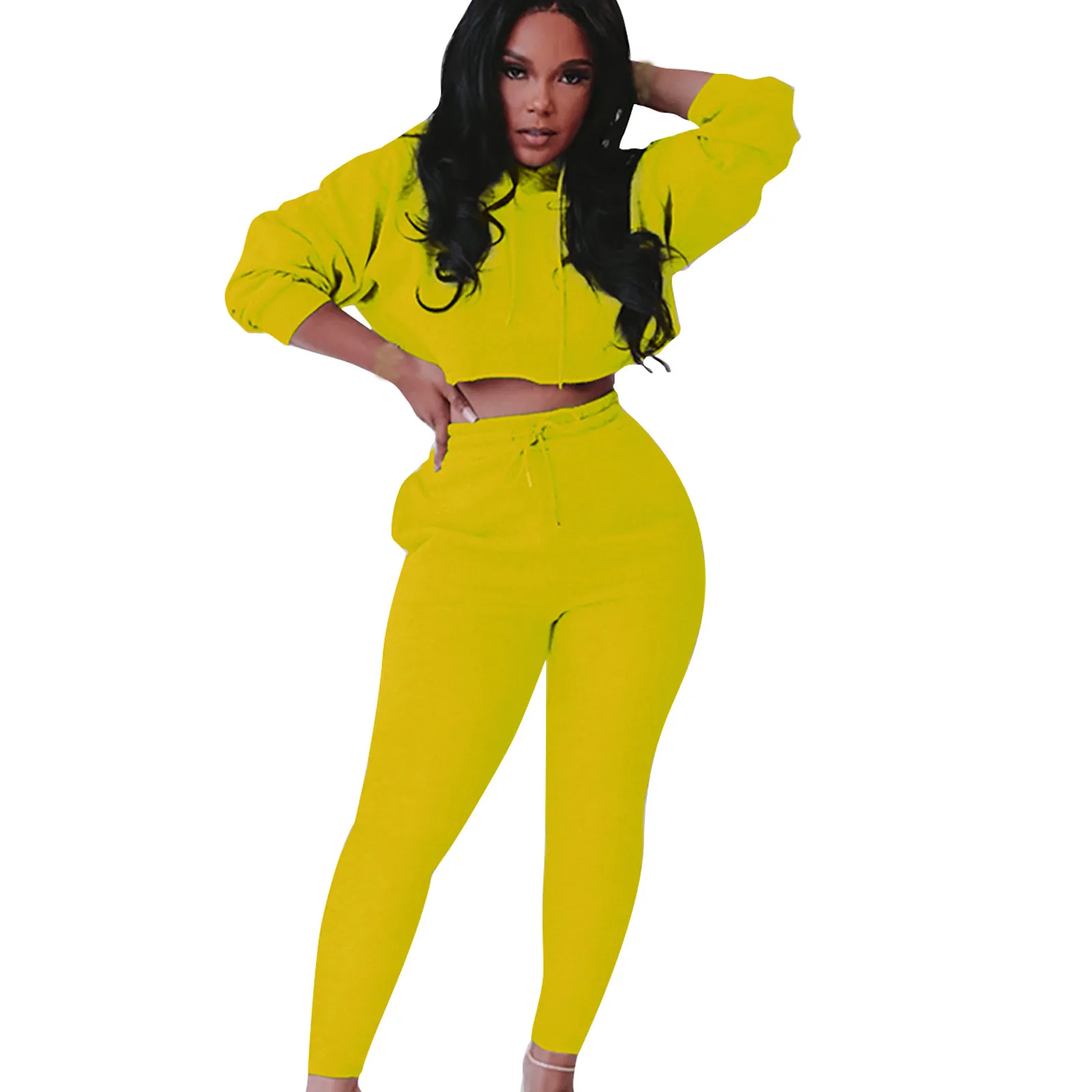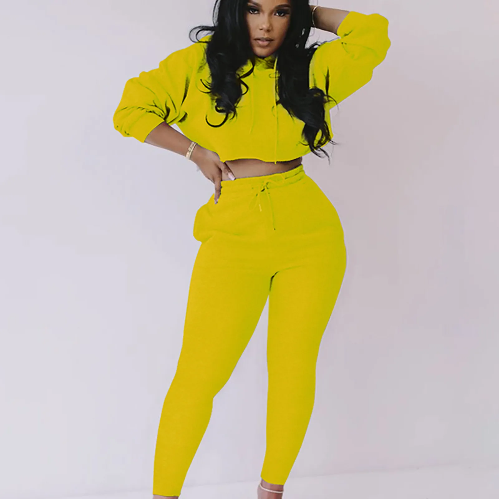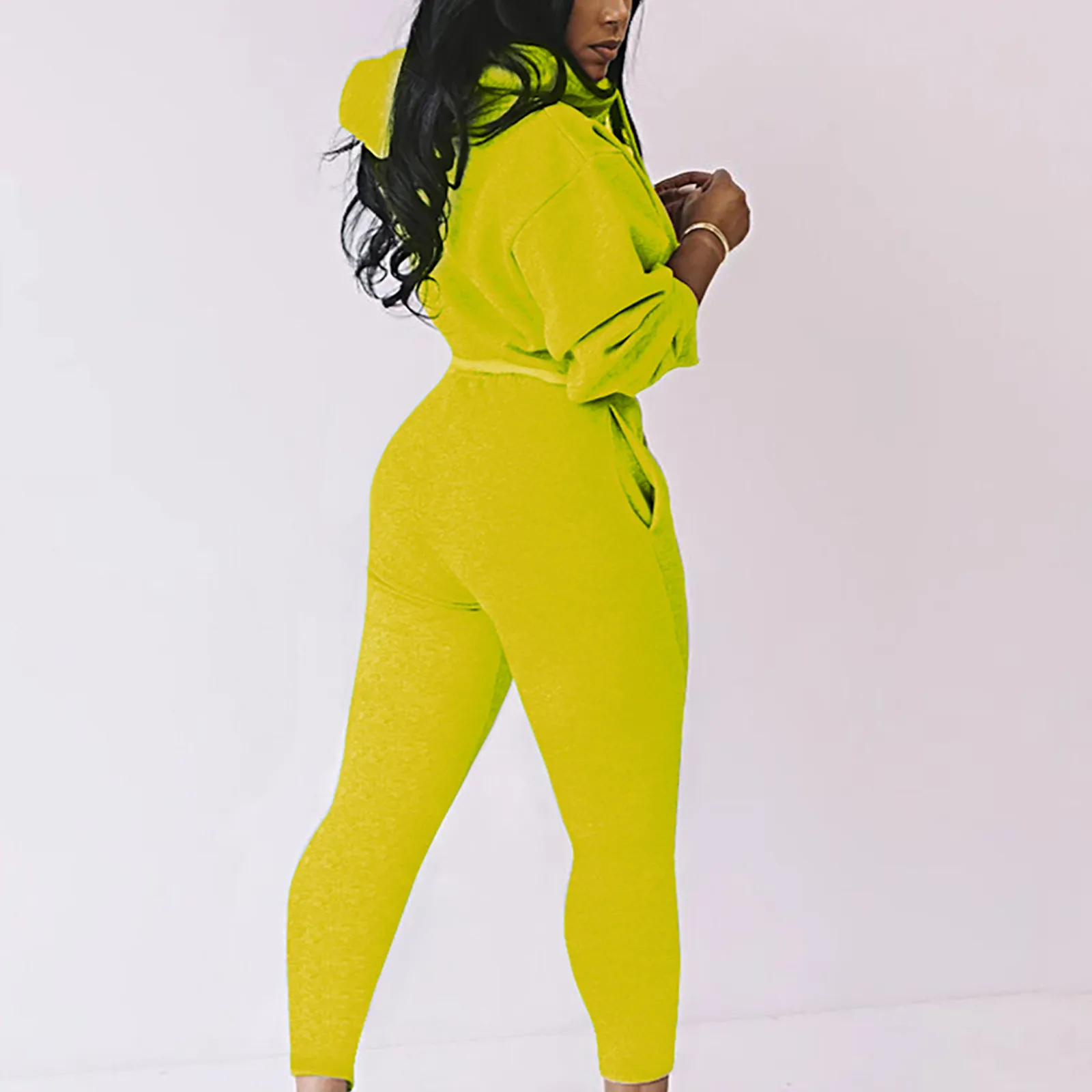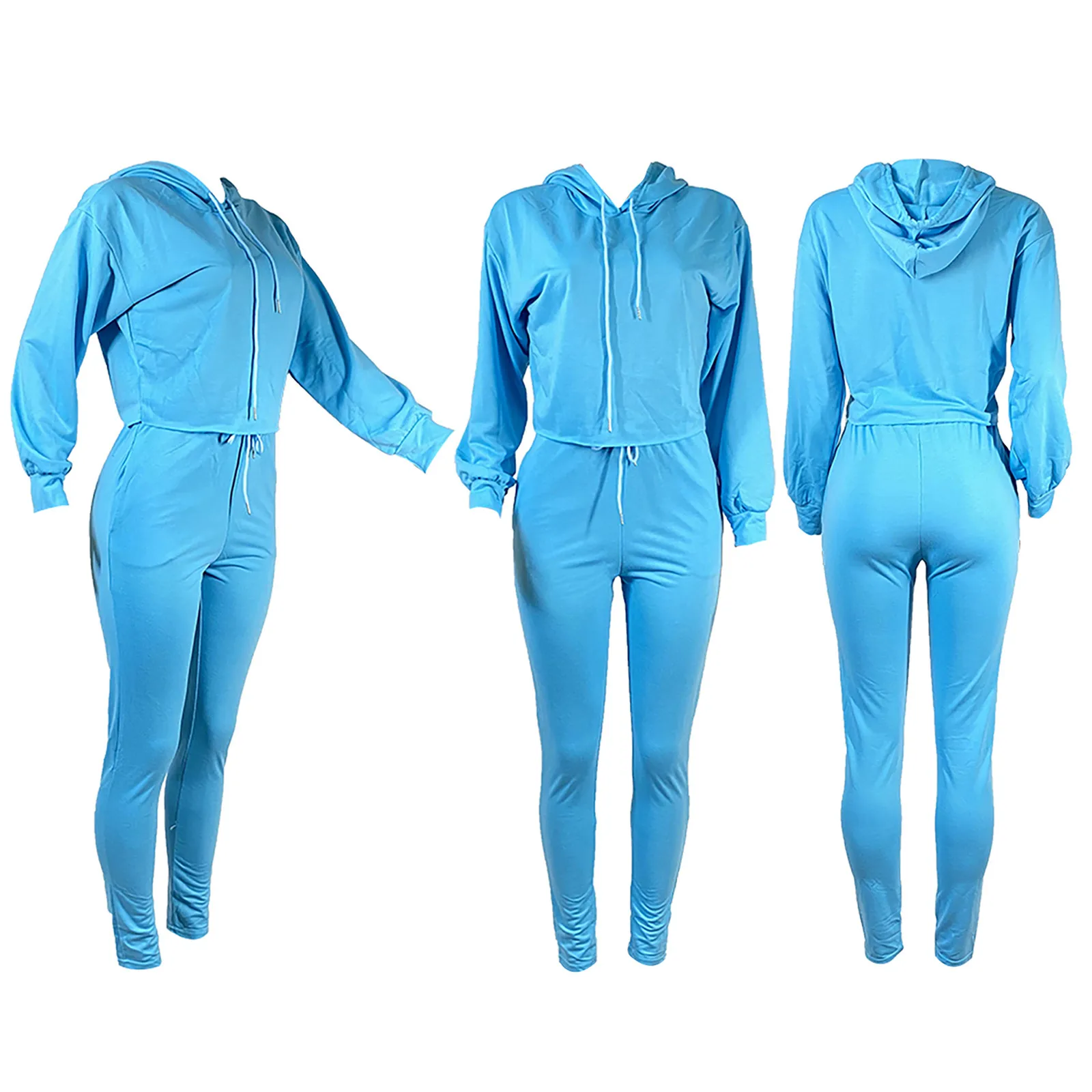 Женский модный пуловер с капюшоном и длинным рукавом, однотонные брюки, повседневный костюм