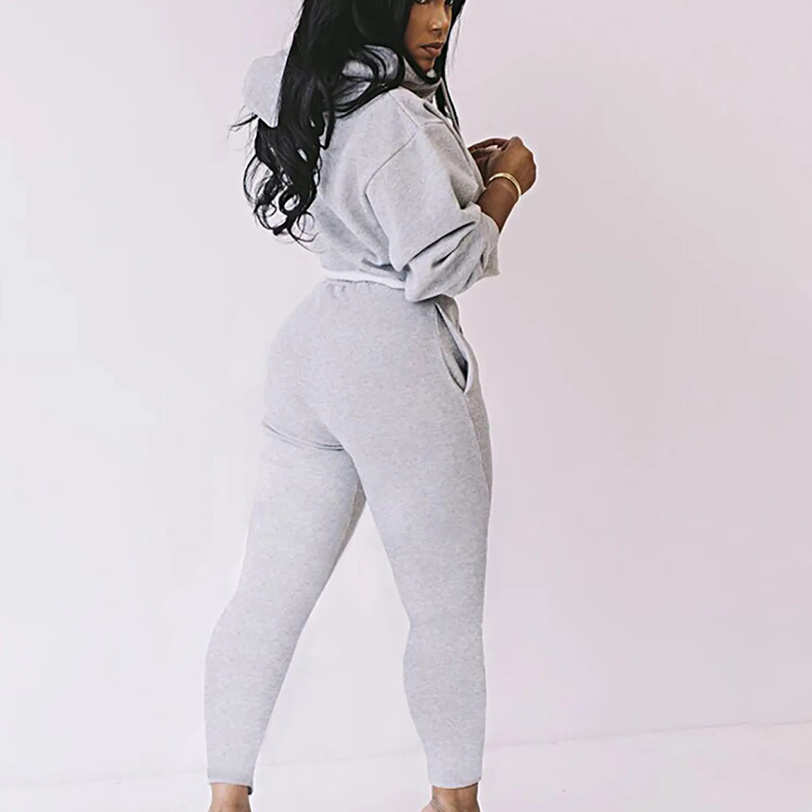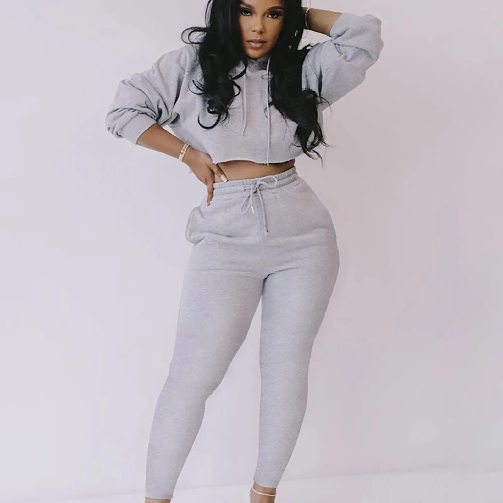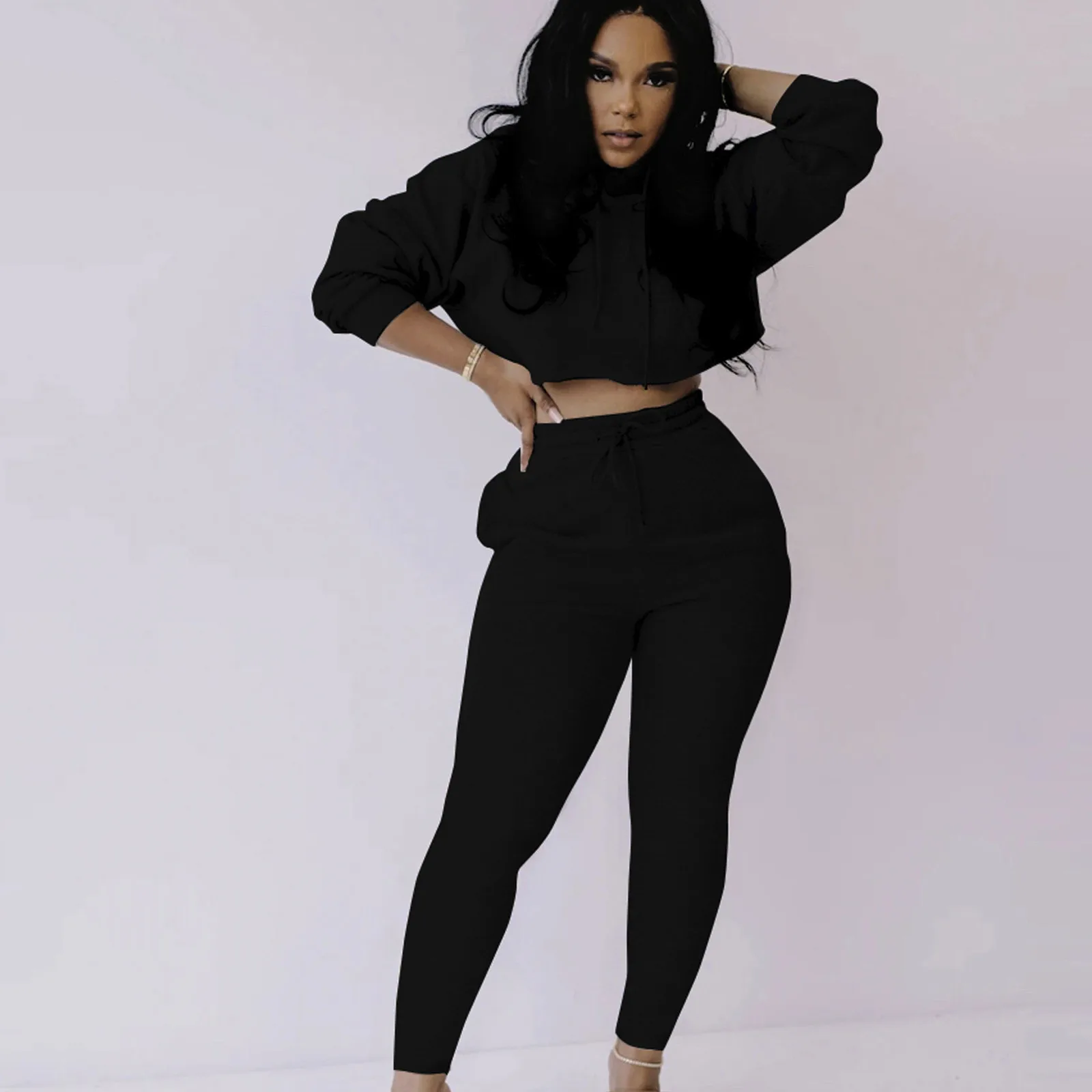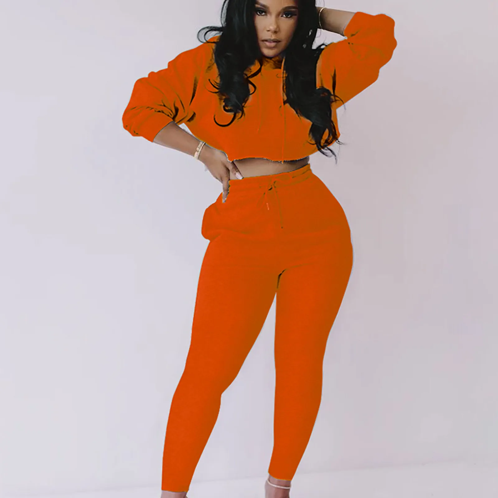 Женский модный пуловер с капюшоном и длинным рукавом, однотонные брюки, повседневный костюм