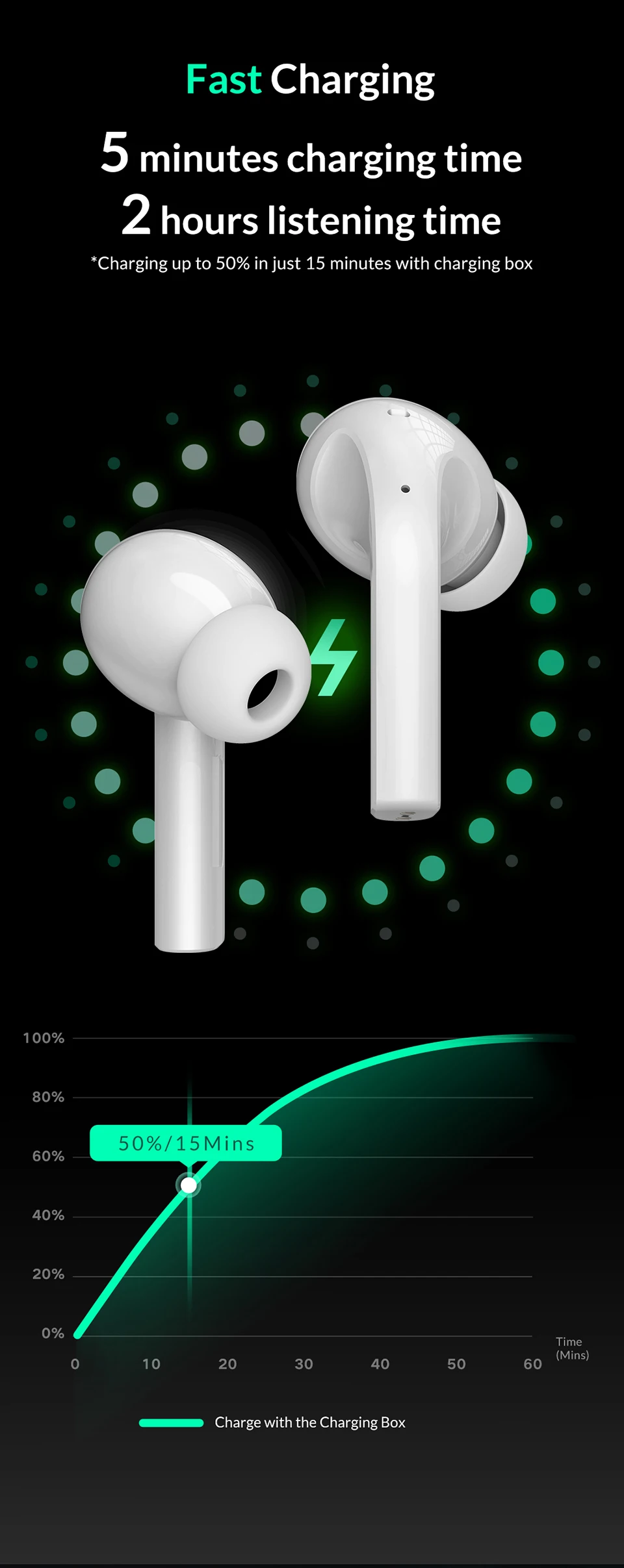 Адаптивная EQsmart - 5 минут, время зарядки, 4,5 часов прослушивания музыки