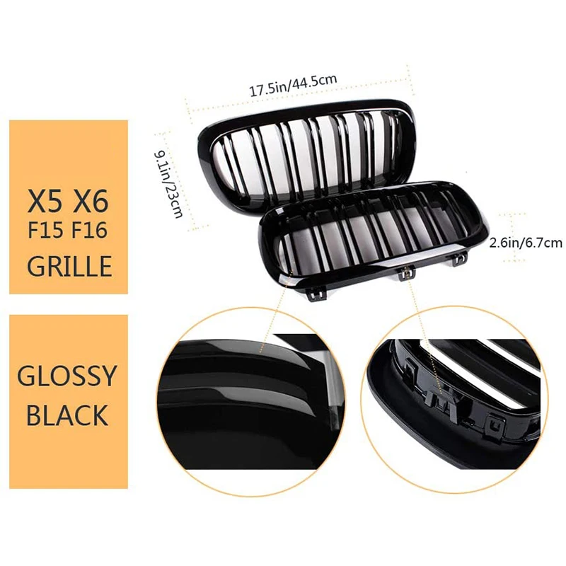 Передняя носочная решетка двойная планка Спортивная решетка для-BMW X5 F15 X6 F16 X5M F85 X6M F86 2013-2019 (глянцевый черный)