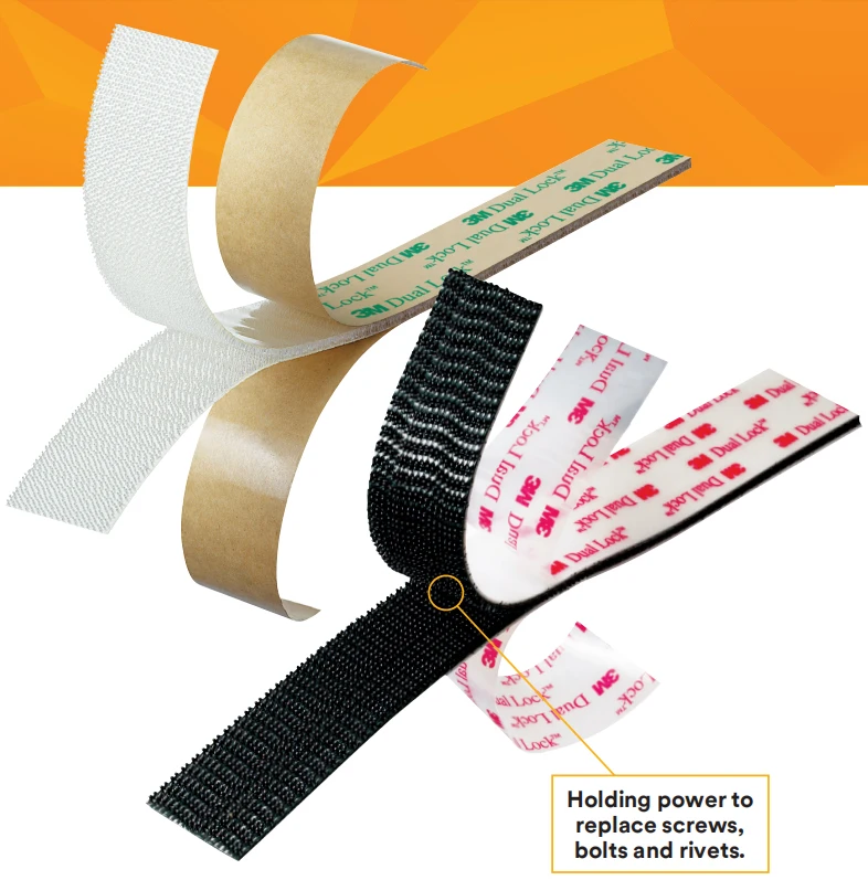 3 м™Двойной замок™Reclosable крепеж SJ4570 низкий профиль является низкой поверхностной энергии клей на задней части прозрачного полипропиленового reclosable крепежа. Этот продукт составляет половину толщины стандартного 3 м™Двойной замок™Reclosable крепежи, обеспечивая низкий профиль крепления. Альтернатива Винтам и болтам, эта скрытая застежка обеспечивает плотное прилегание и гладкий Эстетический внешний вид.
