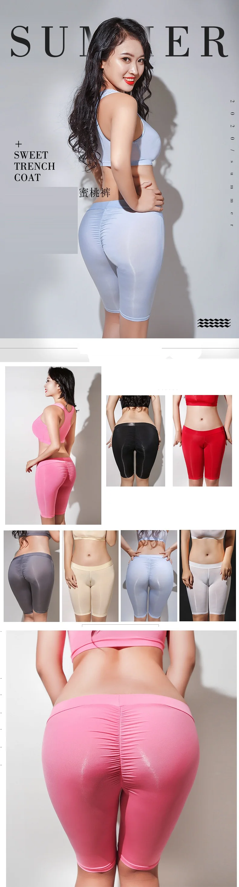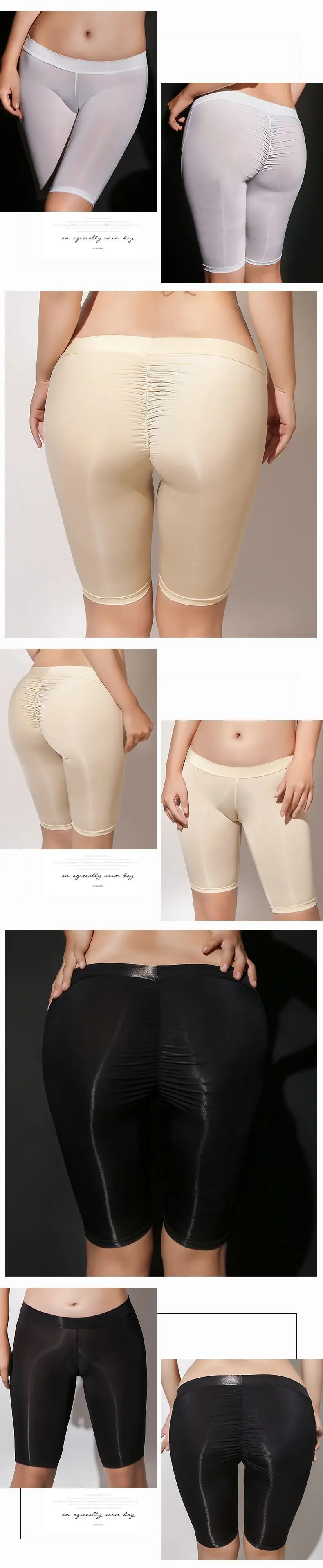 Сексуальные женские шорты с низкой талией, высокая эластичность, масляный блеск, длина до колена, штаны, пуш-ап, плотные, ледяной шелк, прозрачные штаны, яркие цвета