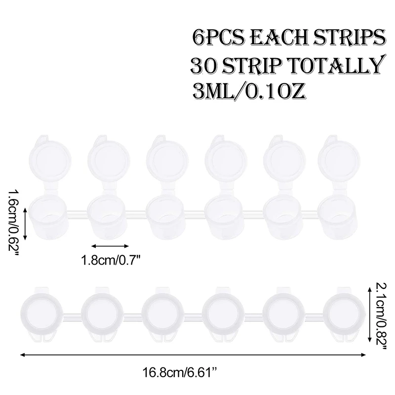 30 полосок, 180 горшков, полоски для красок, 3 мл, мини-горшок для красок, пустые чашки для красок, пластиковые контейнеры для хранения