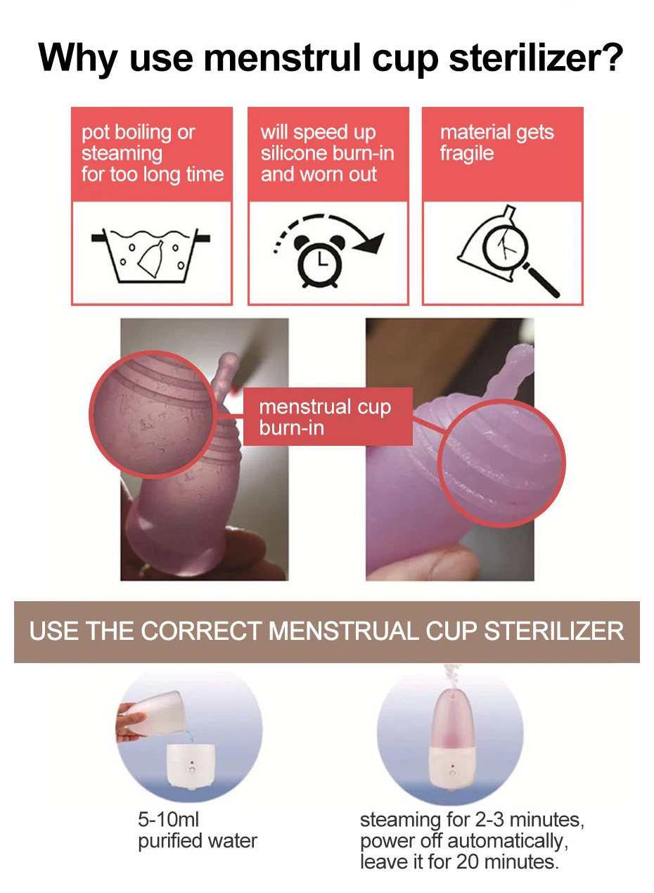 Женский силиконовый паровой стерилизатор для менструальных чашек, женственные гигиенические продукты, менструальный период, стерилизация, дезинфекция, коробка