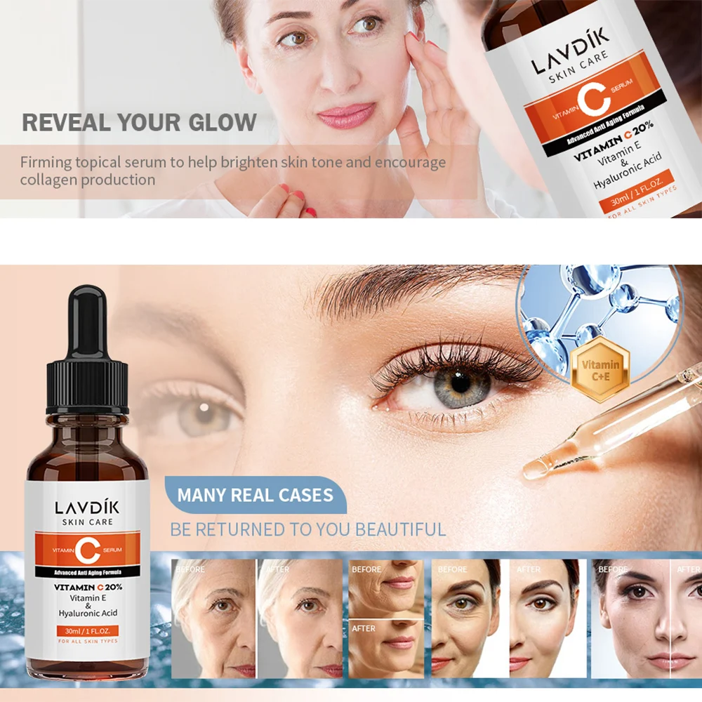 Витамин С (20%) стимулирует выработку коллагена, который делает вашу кожу более яркой, упругой и молодой.