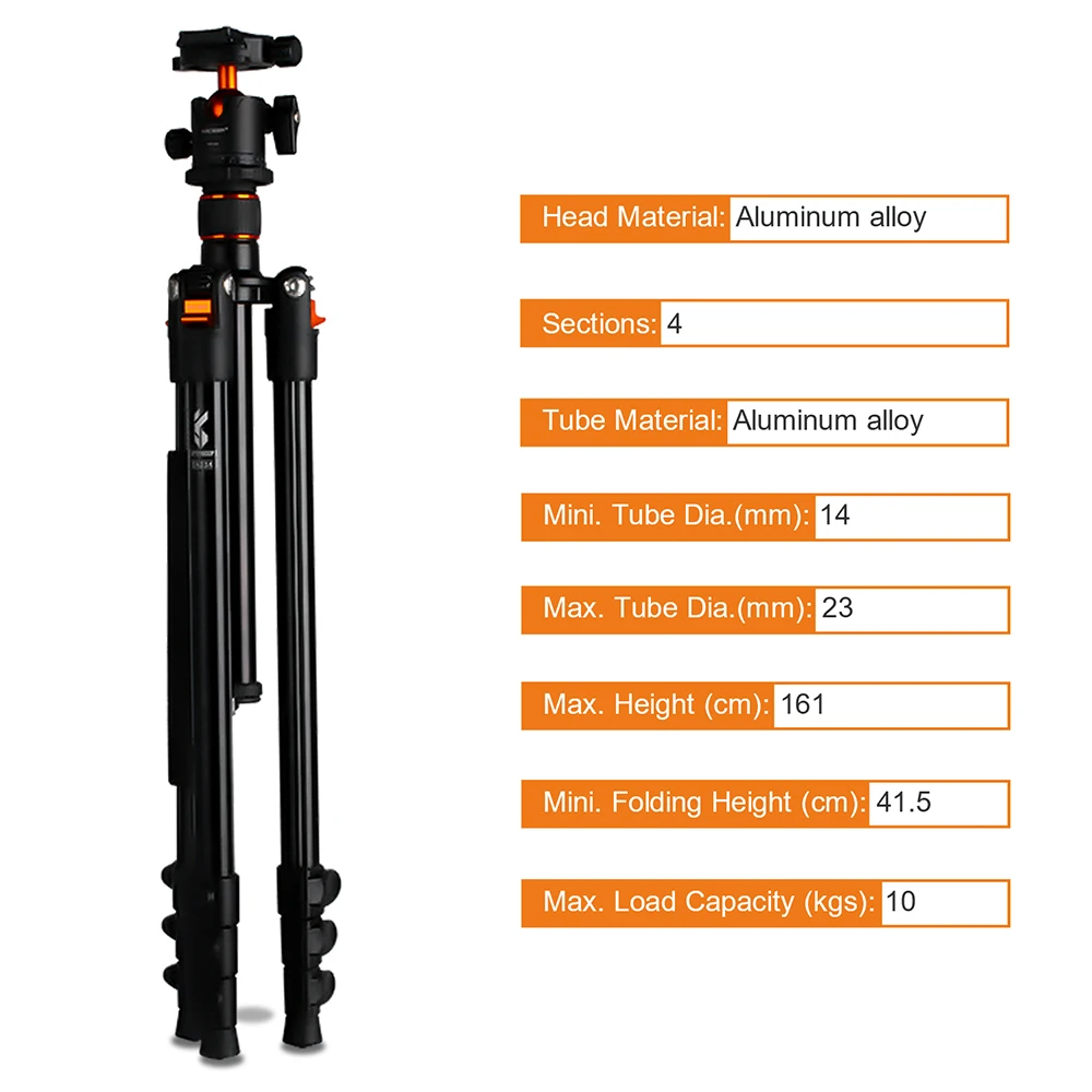 Регулируемый Камера штатив-Трипод стойка 4-секционный 63.4in/161 см, 10 кг грузоподъемность с панорамным видом на поворотной шаровой головкой Quick Release монопод с пластиной