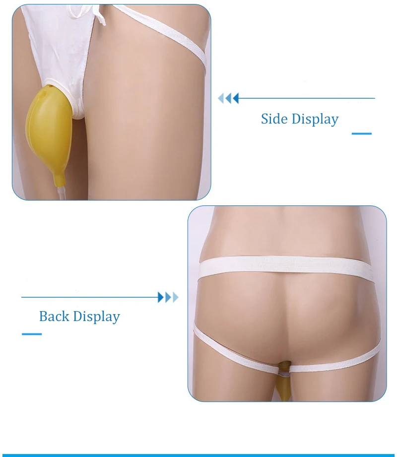 2. Прикрепите ремень к талии. Треугольная ткань, прилипающая к животу. Положите пенис в писсуар.