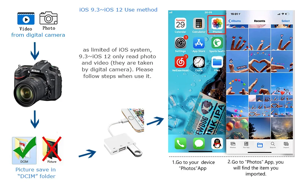 Оборудование, поддерживающее ≤ 500 мА ток 1. Можно использовать usb-порт s и порт Lightning одновременно. (названия трех usb-накопителей должны отличаться.) 2. Может поддерживать мобильный жесткий диск, мобильную клавиатуру, u-диск, микрофон и другие продукты высокого тока 3. Рекомендуется использовать адаптер для зарядки 9 В/2 А при чтении мобильных жестких дисков. Формат съемного жесткого диска должен быть «FAT32 или EXFAT»