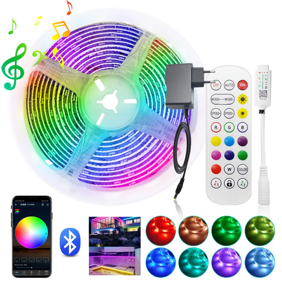 Новый Bluetooth музыкальный светодиодный ленточный светильник s RGB 5050 2835 гибкая лента RGB светодиодный светильник 5 м 10 м 15 м 20 м лента Диод + адаптер контроллера