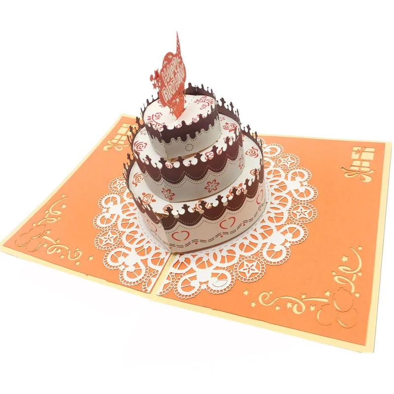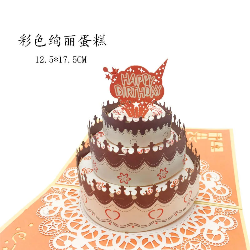 3-х мерные Цвет "торт на день рождения» на день рождения открытки на день рождения! 10 шт./лот! 3D креативная ручная работа и лазерная резка бумажные открытки подарки на день рождения!