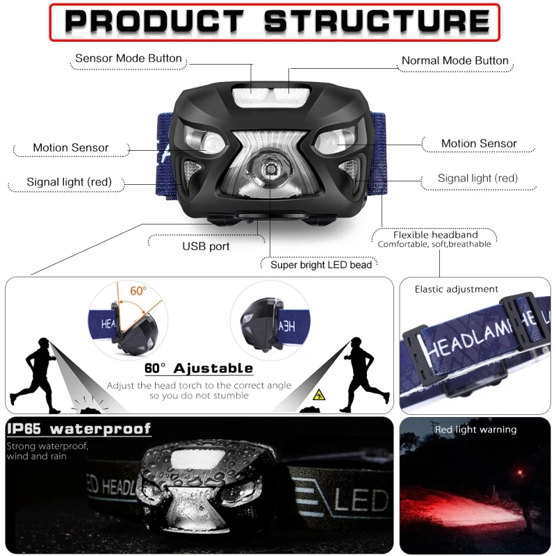 1. Индукционная фара на палец, когда ваша рука находится рядом с фарой в пределах 15 см, фара включится, когда вы оставите фару пальцем, она будет выключена.