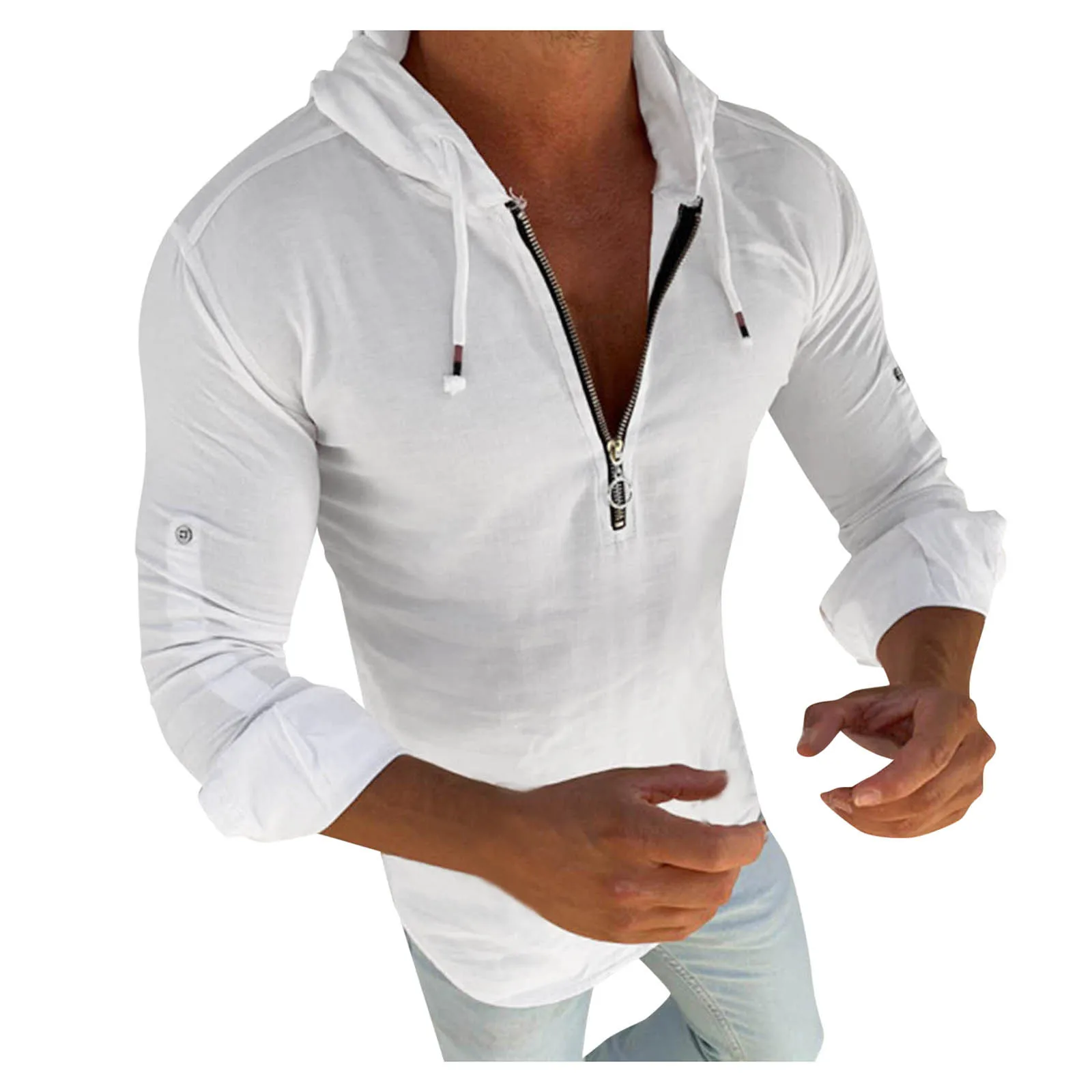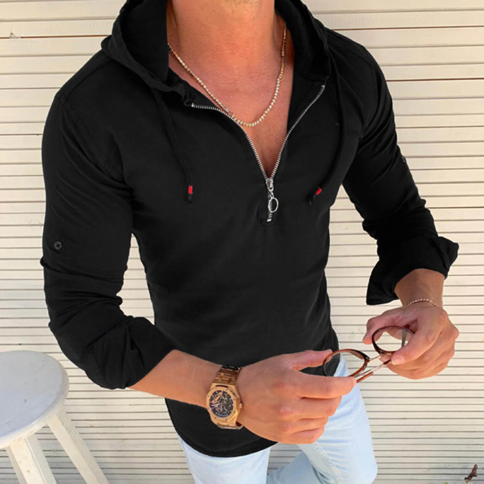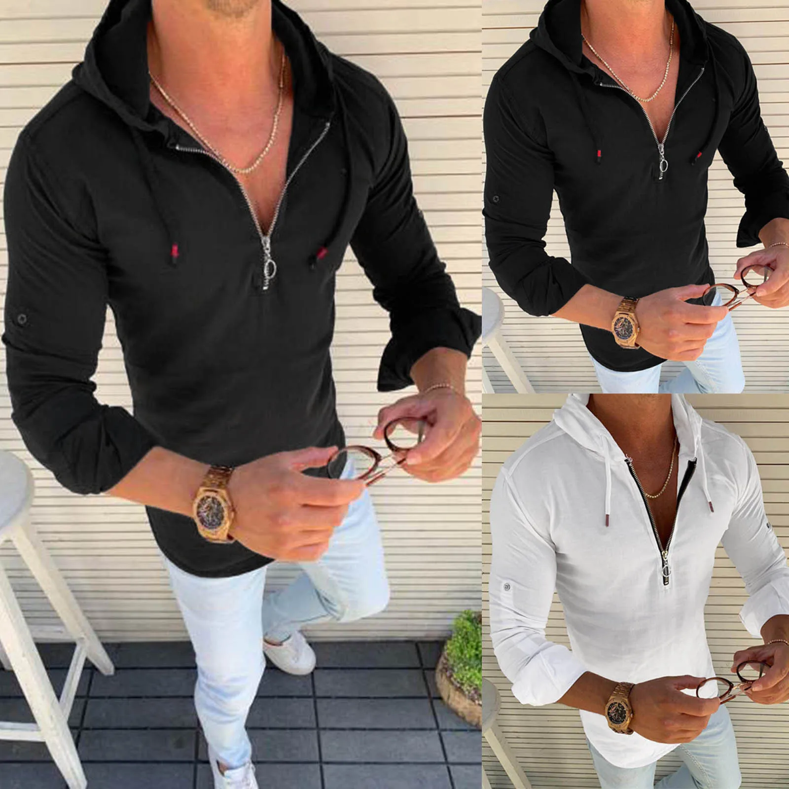 Мужская осенне-зимняя футболка с длинными рукавами на молнии с капюшоном, верхняя одежда, блузка