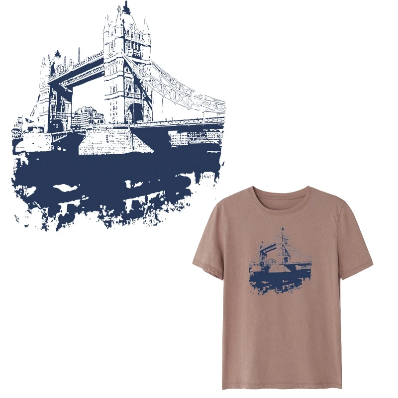 Модный эскиз мост термо железо на перенос патч тепло винил передача для одежды футболка башня наклейки моющийся значок сделай сам
