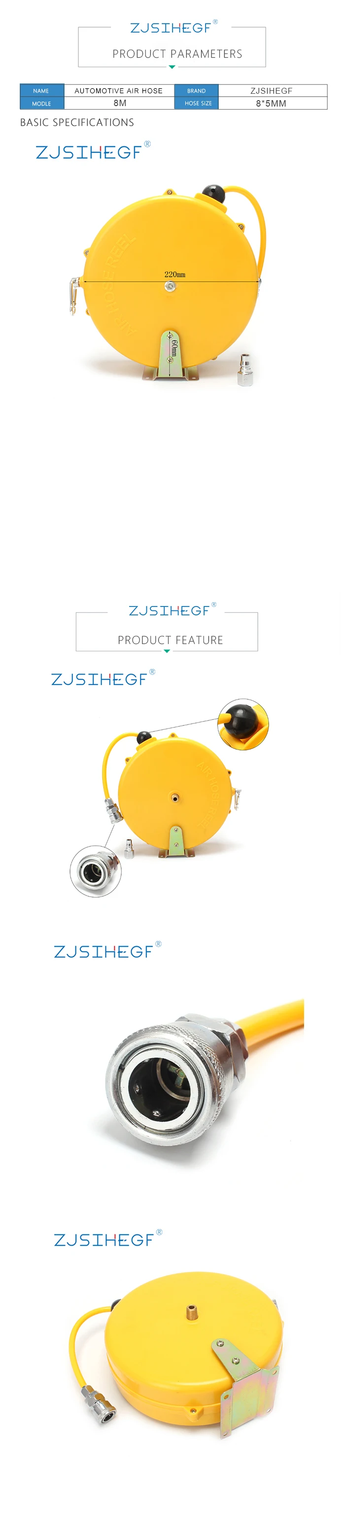8 м автомобильный воздушный шланг катушка пневматический шланг PU труба OD 8 мм ID 5 мм автоматическая выдвижная катушка Телескопический барабан шланг PU8 * 5