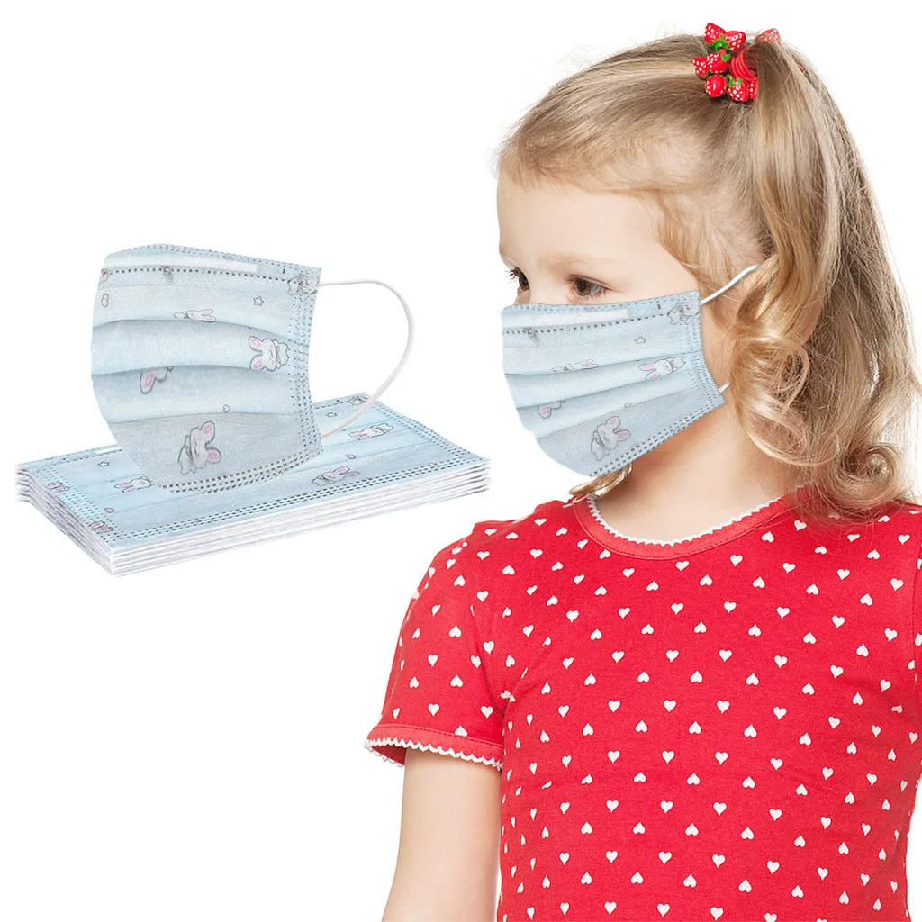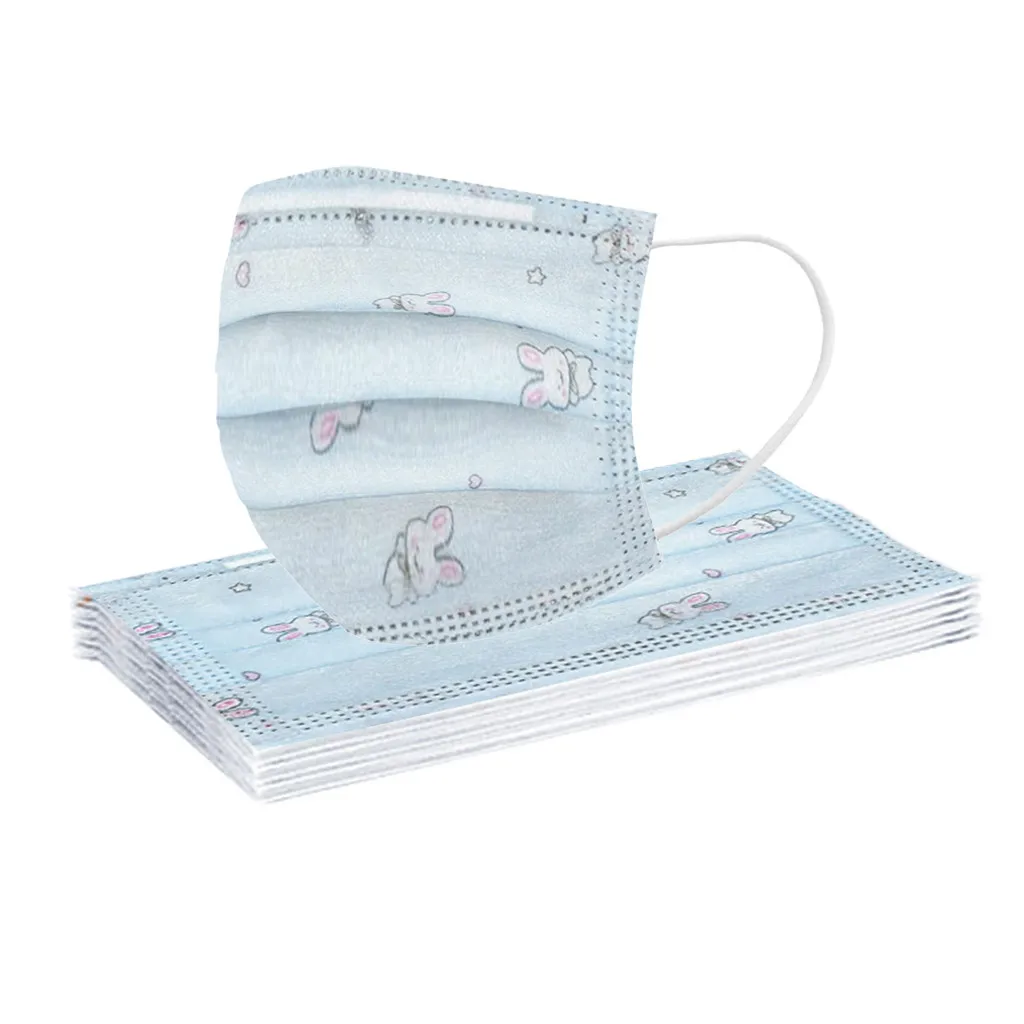 10 шт., одноразовая Защитная маска для лица для детей, милые маски с принтом кролика для девочек, маски для защиты от пыли, маски для маска