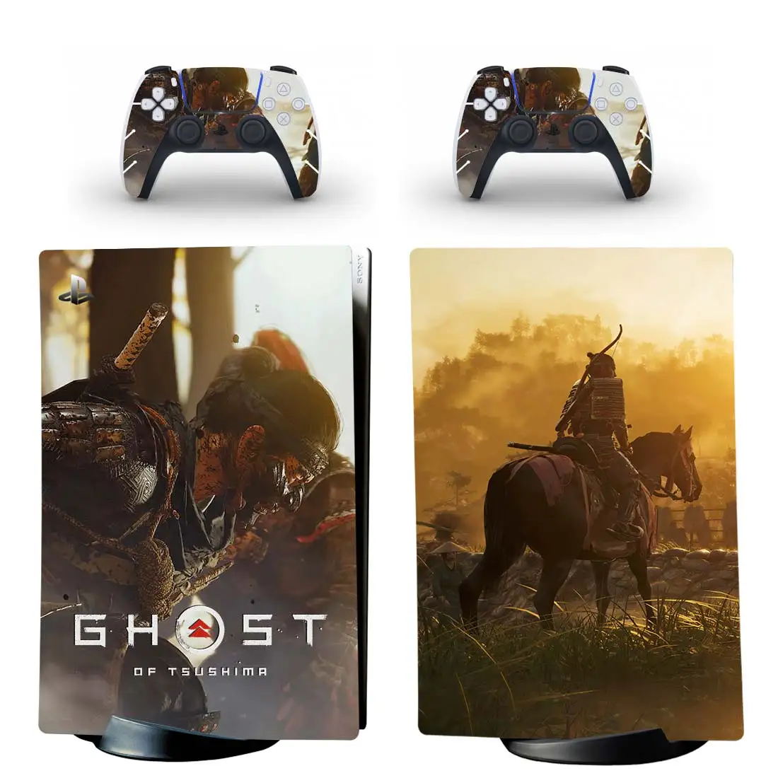 Наклейка Ghost of Tsushima PS5 Digital Edition для консоли PlayStation 5 и 2 контроллера PS5 виниловая наклейка на кожу