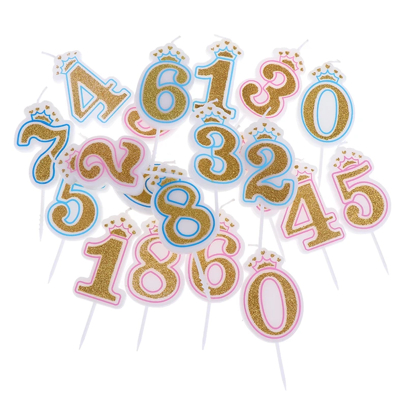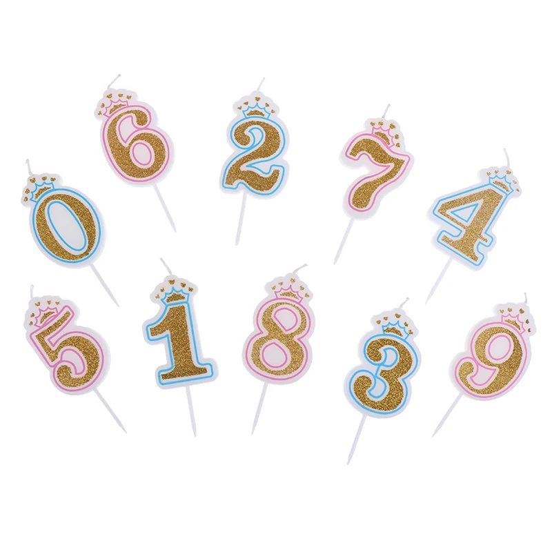 Свечи для дня рождения с цифрой 0-9, золотистые и Серебристые свечи для дня рождения, украшения для детской вечеринки