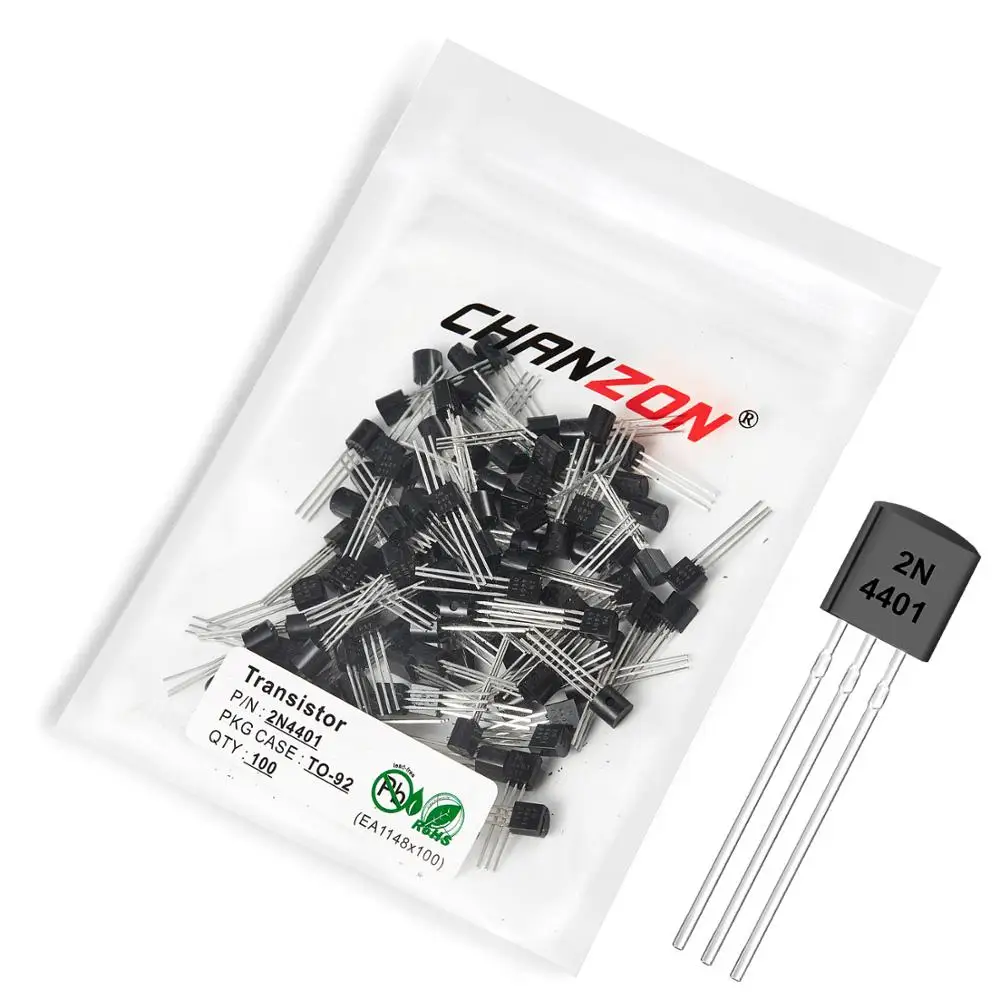 Описание товара: Модель продукта: 2N4401 Посылка чехол: TO-92 Посылка: 100 шт./упак. Ток: 0.6A Напряжение: 40 в