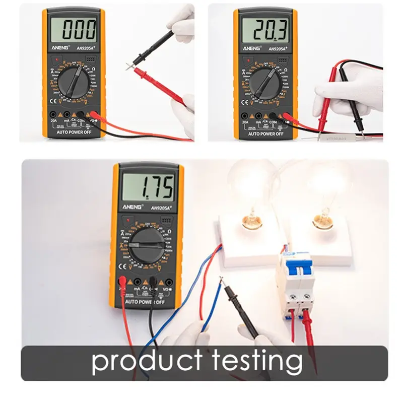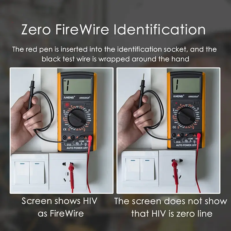 * Многофункциональность: Может использоваться для тестирования переменного/постоянного тока, напряжения переменного/постоянного тока, сопротивления, емкости, непрерывности, HFE, живого провода и null провода и диода.