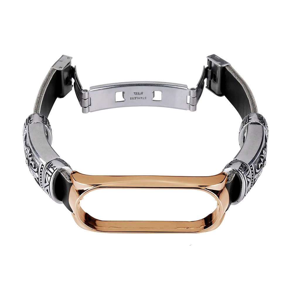 Для Mi Band 4 ремешок DIY оригинальный ретро браслет из натуральной кожи ремень для Xiaomi Mi Band 3 винтажные гравированные металлические браслеты на запястье