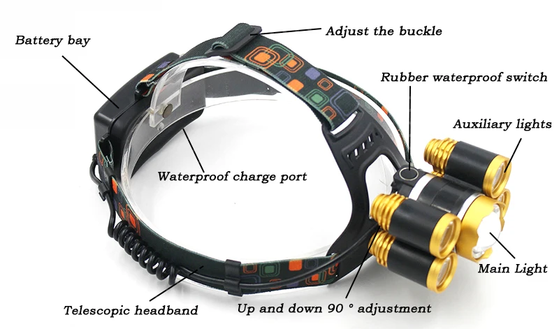 5 светодиодов:4 модели переключателей: один кнопочный переключатель: 1x XM-L T6/ 2x XM-l T6/ 3x XM-L T6/мигающий