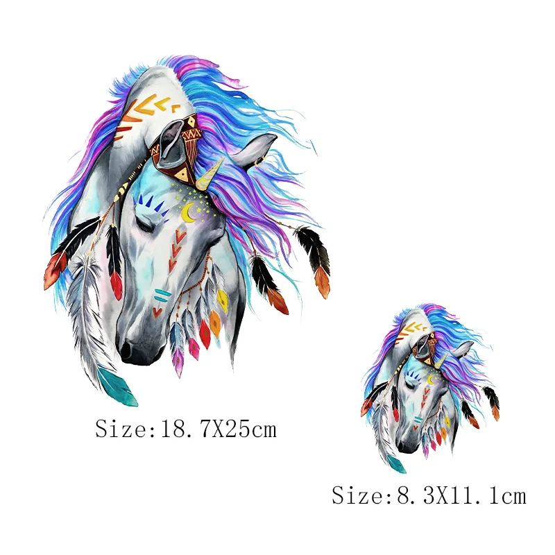 Разноцветная нашивка с перьями лошади для одежды, переводная нашивка утюгом для мужчин и женщин, футболка, джинсы, «сделай сам», моющаяся нашивка, термопереводные наклейки