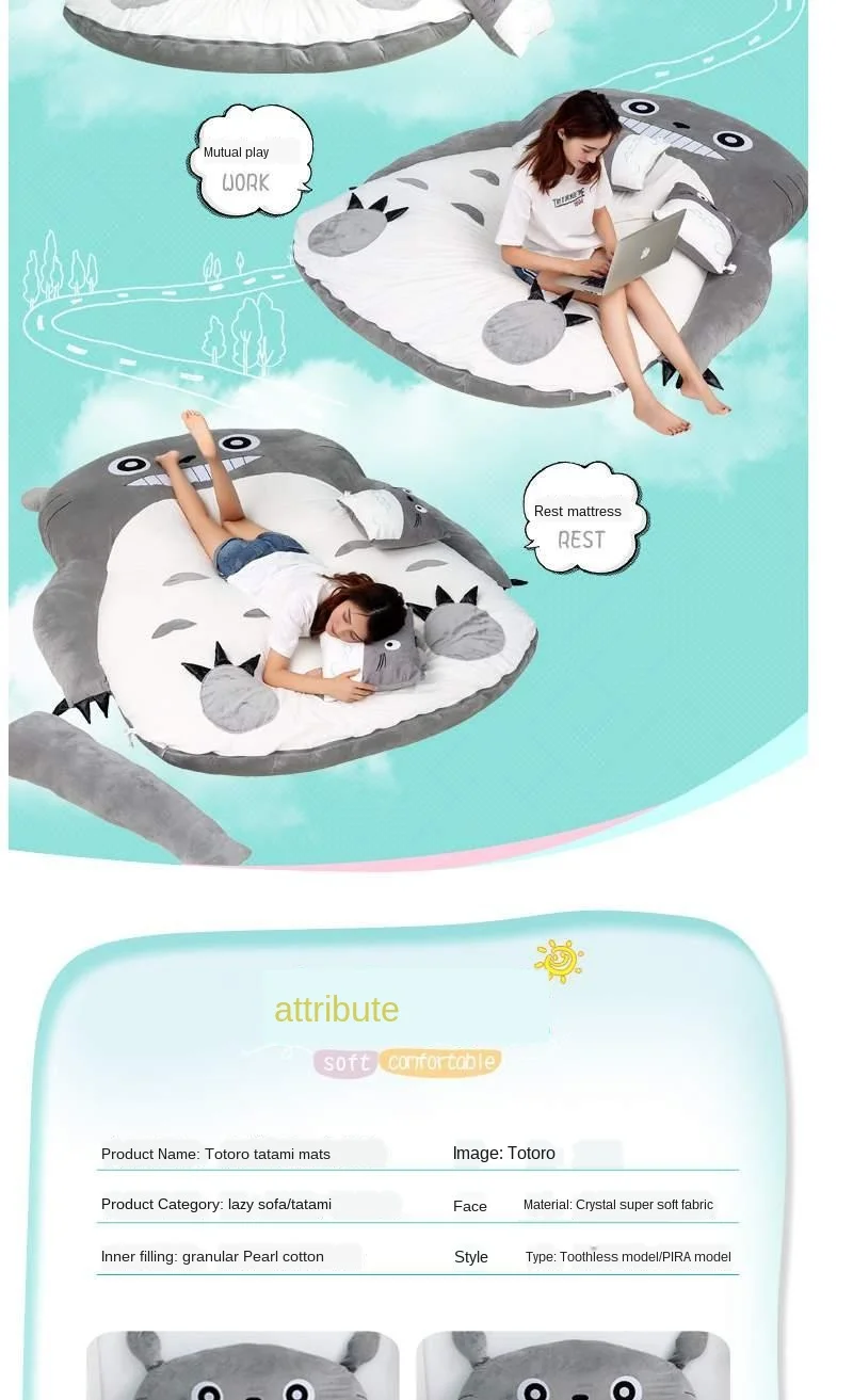Фиолетовый Мой сосед Тоторо ленивый диван кровать спальный мешок заполненный мягкий мультфильм милые татами складной пол двойной толстый матрас