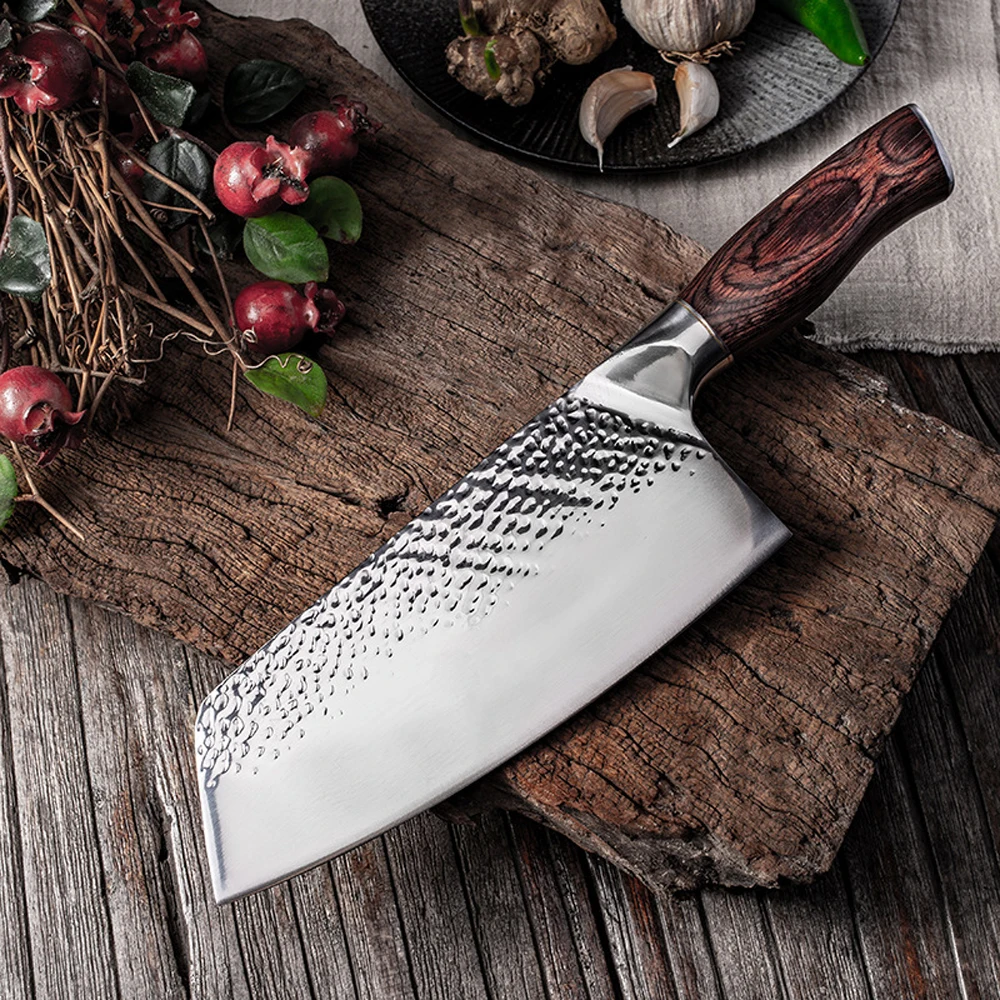 Нож для мясника из нержавеющей стали 5CR15MOV, китайский нож для резки, кухонный нож шеф-повара, инструменты для приготовления пищи с деревянной ручкой