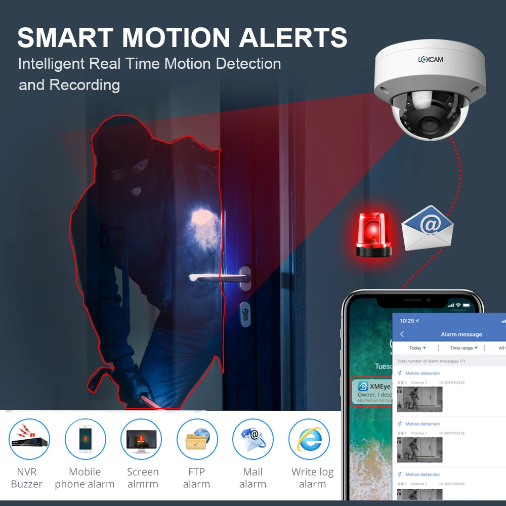 Поддержка обнаружения движения, объектив камеры был покрыт методом обнаружения сигнализации, поддержка зуммера, электронной почты и методов push-уведомления приложения.