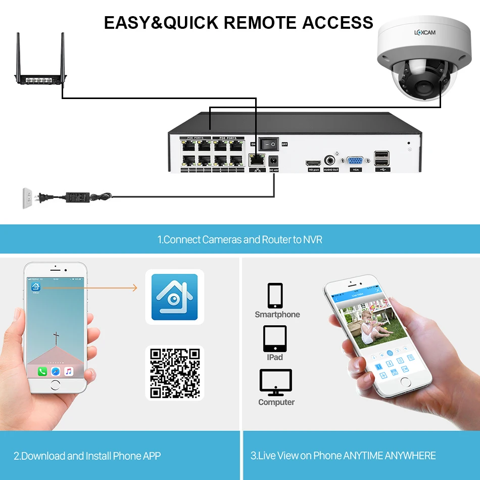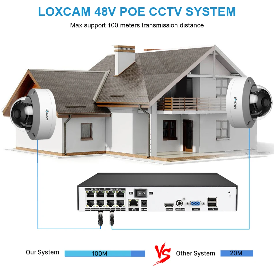 1. Наши новыеСистема камеры 4K POE. 8-канальный NVR дизайн, поддержка подключения до 8 шт камер, вы можете купить Loxcam ip-камеры с питанием по POE для расширения вашей системы видеонаблюдения.