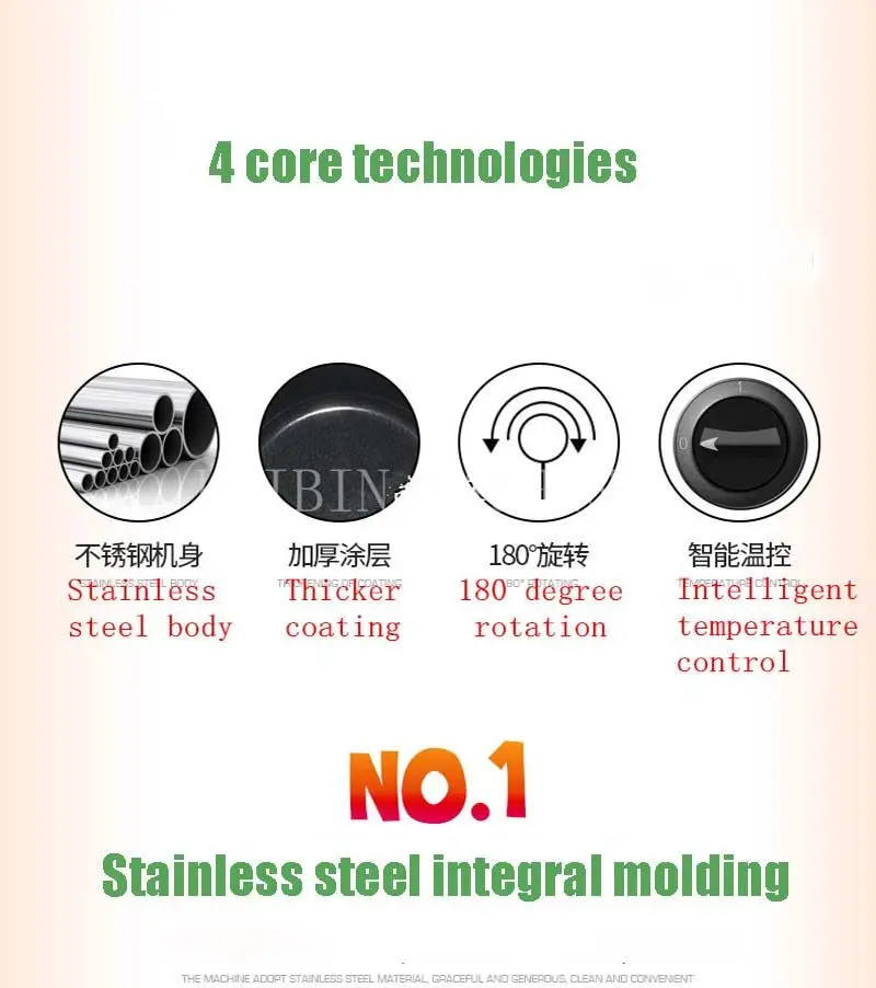 Электрическая вафельная машина для яиц имеет общее качество нержавеющей стали, красиво и легко моется. Панель изготовлена из нержавеющей стали, гладкая, не грубая, прочная и не деформированная. Регулируйте температуру вращающимся образом, эффективно и точно Контролируйте температуру, с ручкой таймера слева. Изготовлено из твердой деревянной ручки, обладает сильной термостойкостью, обладает хорошим антиобжигающим эффектом, практичен и не скоропортящийся.