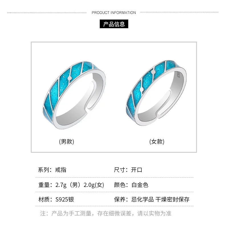 2021 горячая Распродажа, дропшиппинг, метеоритный дождь, пары, регулируемые кольца, серебро 925 пробы, эмаль, Unix, для женщин, мужчин, пара, для влюбленных, кольцо