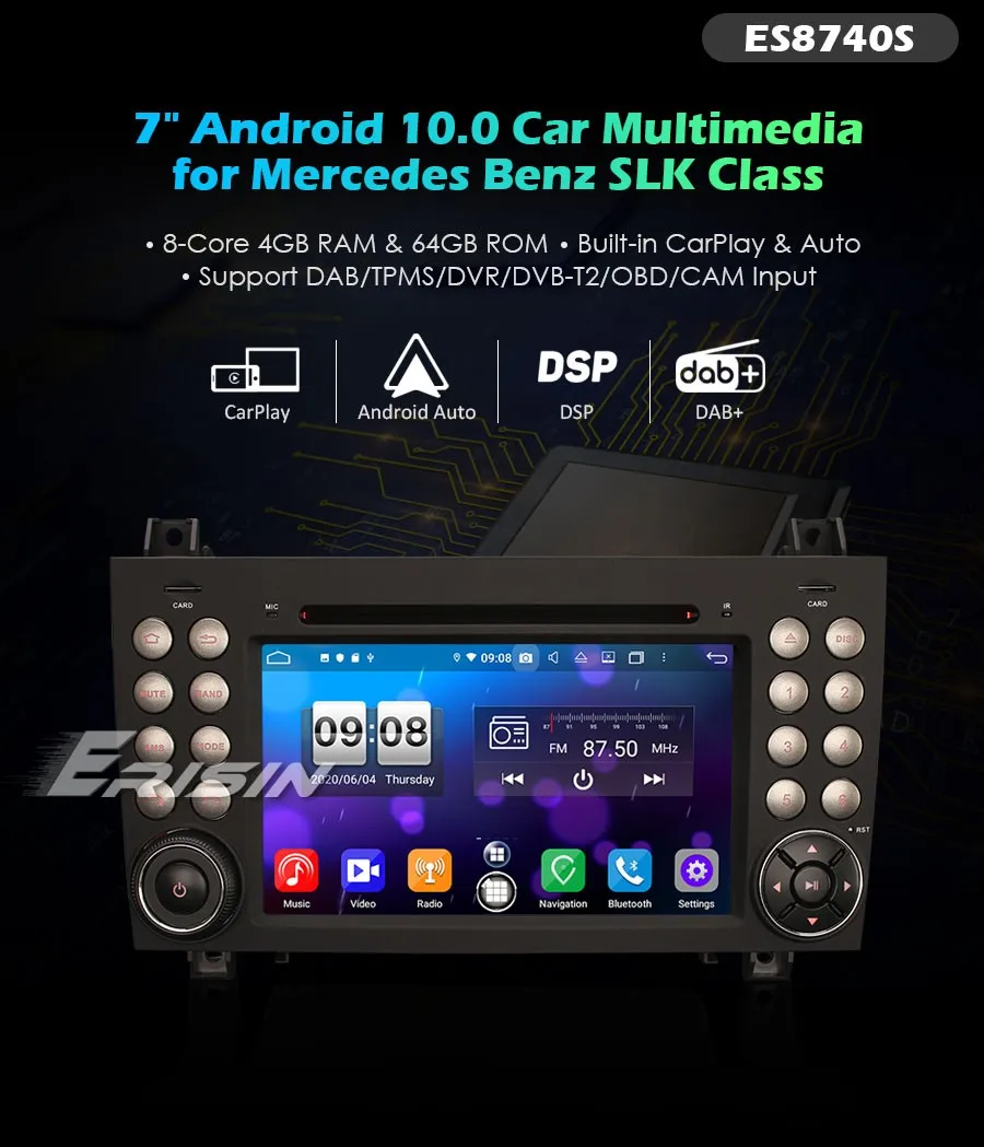 ES8740S 7 "Восьмиядерный Android 10,0 автомобильный мультимедиа CarPlay & Auto GPS TPMS/DVR/DTV/DAB-IN...