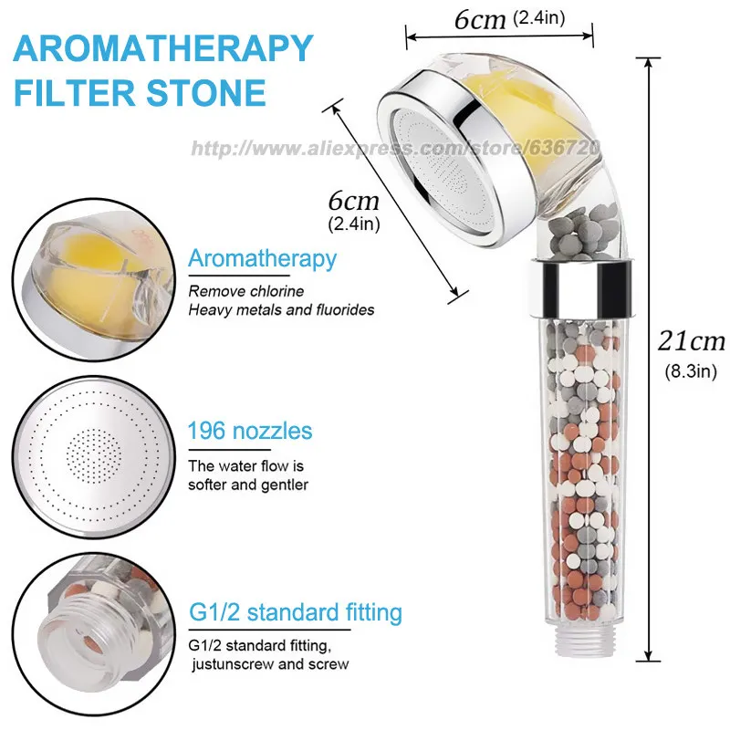 -Портативная душевая головка поставляется -3 набора ароматических сменных фильтров (случайное распределение) -NPT 1/2 "Универсальное крепление (стандарт для США и ЕС) -Картридж ароматического фильтра должен быть заменен каждый месяц -Минеральные Керамические Бусины должны быть заменены каждые 6 месяцев -Насадка для душа высокого давления идеально подходит для дома с низким давлением воды