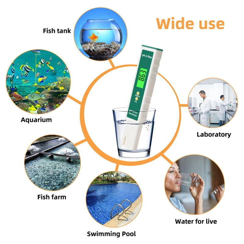 Мини портативный. Широко используется, это идеальный инструмент для любого аквариума, рыболовства, бассейна, спа, школьной лаборатории, еды и напитков, питьевой воды и т. Д.