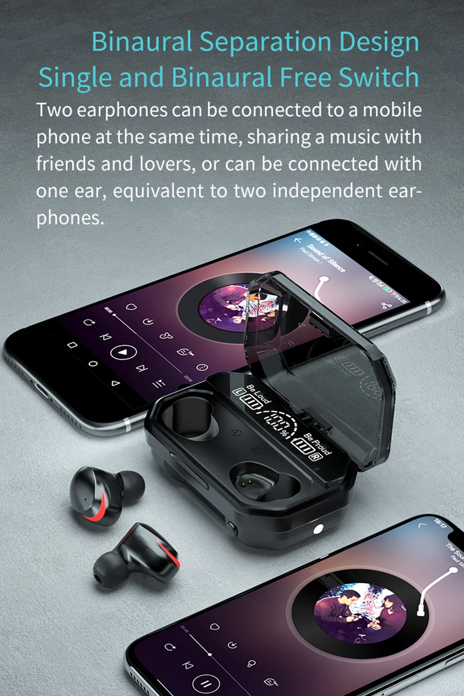 Описание: 1. Вес изделия: 5-6 г (один наушник). 2. Время работы: около 3-4 часов. 3. Время работы в режиме ожидания: 200 часов. 4. Время зарядки: 2 часа. 5. Емкость аккумулятора одного наушника: 40 мА · ч. 6. Зарядное устройство Betty: 2000 мАч. 7. Беспроводное расстояние: 10 м. 8. Версия Bluetooth: Bluetooth 5,1 9. Пылезащитная Производительность: IPX7 10. Категория наушников: настоящие беспроводные наушники 11. Совместимые мобильные телефоны: совместимость с ios, Android и другими смартфонами Упаковочный лист: 2 * мини Bluetooth наушники 1 * зарядное устройство 1 * зарядный кабель (lightning) 1 * Руководство пользователя 2 * пары затычек для ушей