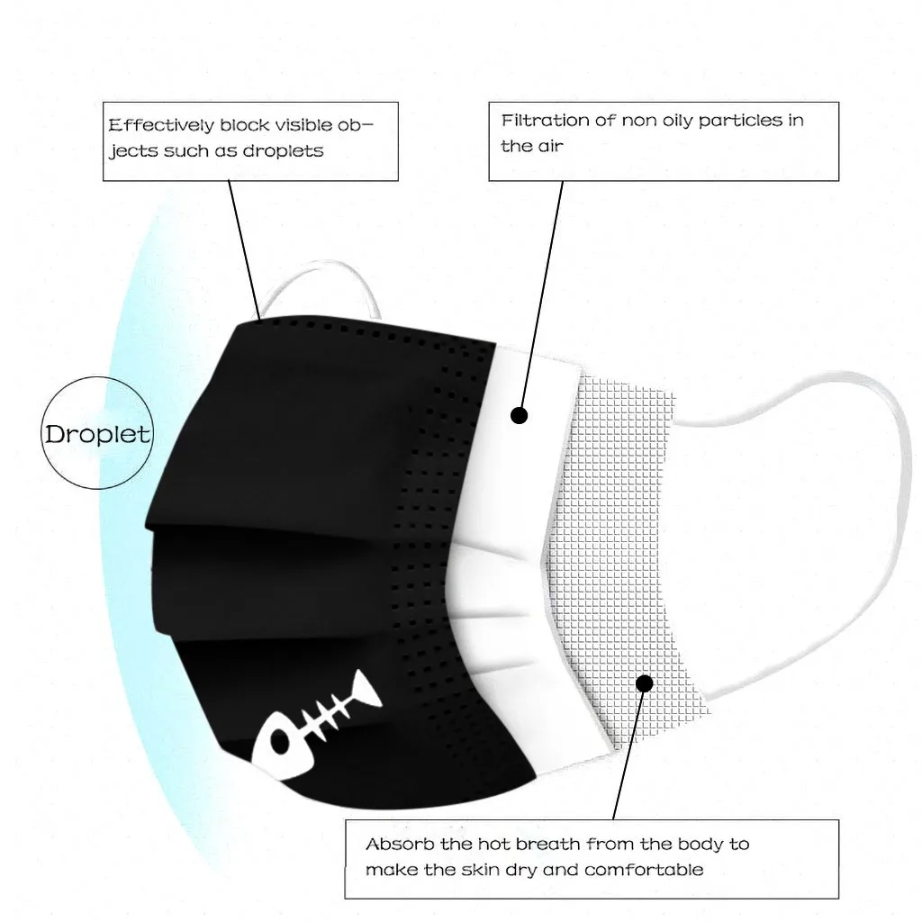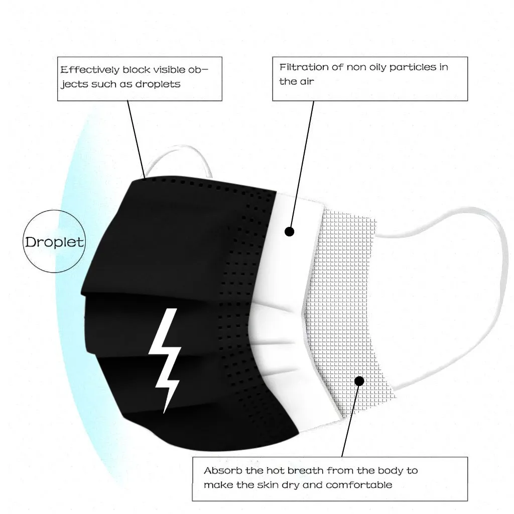 Черная маска одноразовая маска для лица промышленная Ушная петля маска