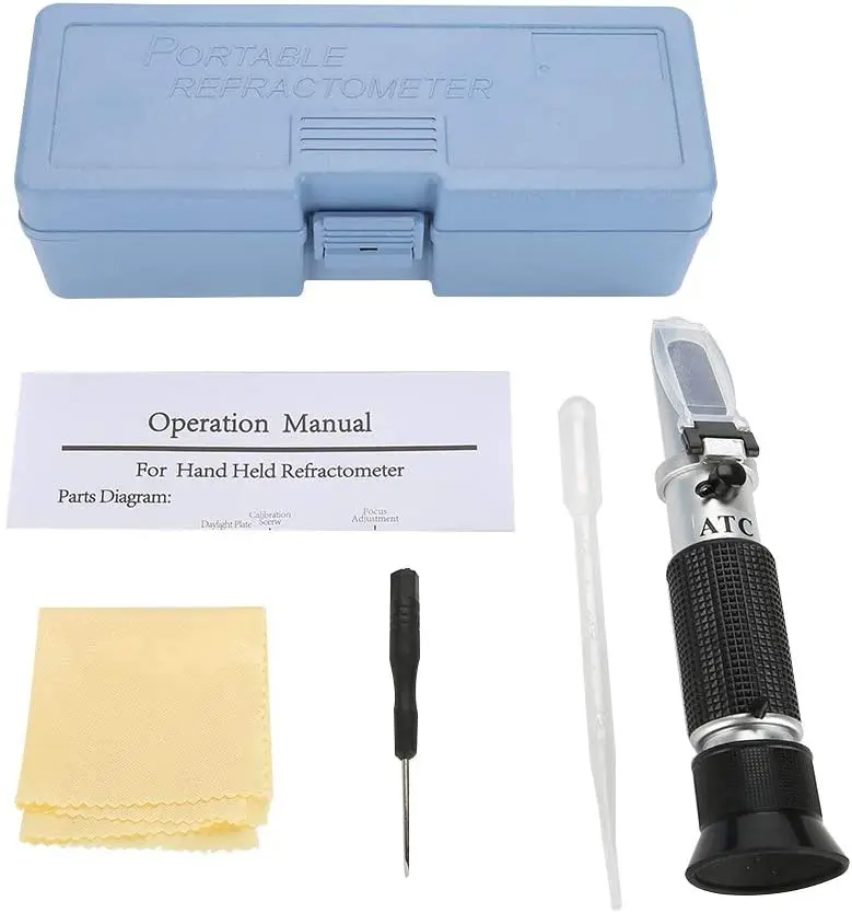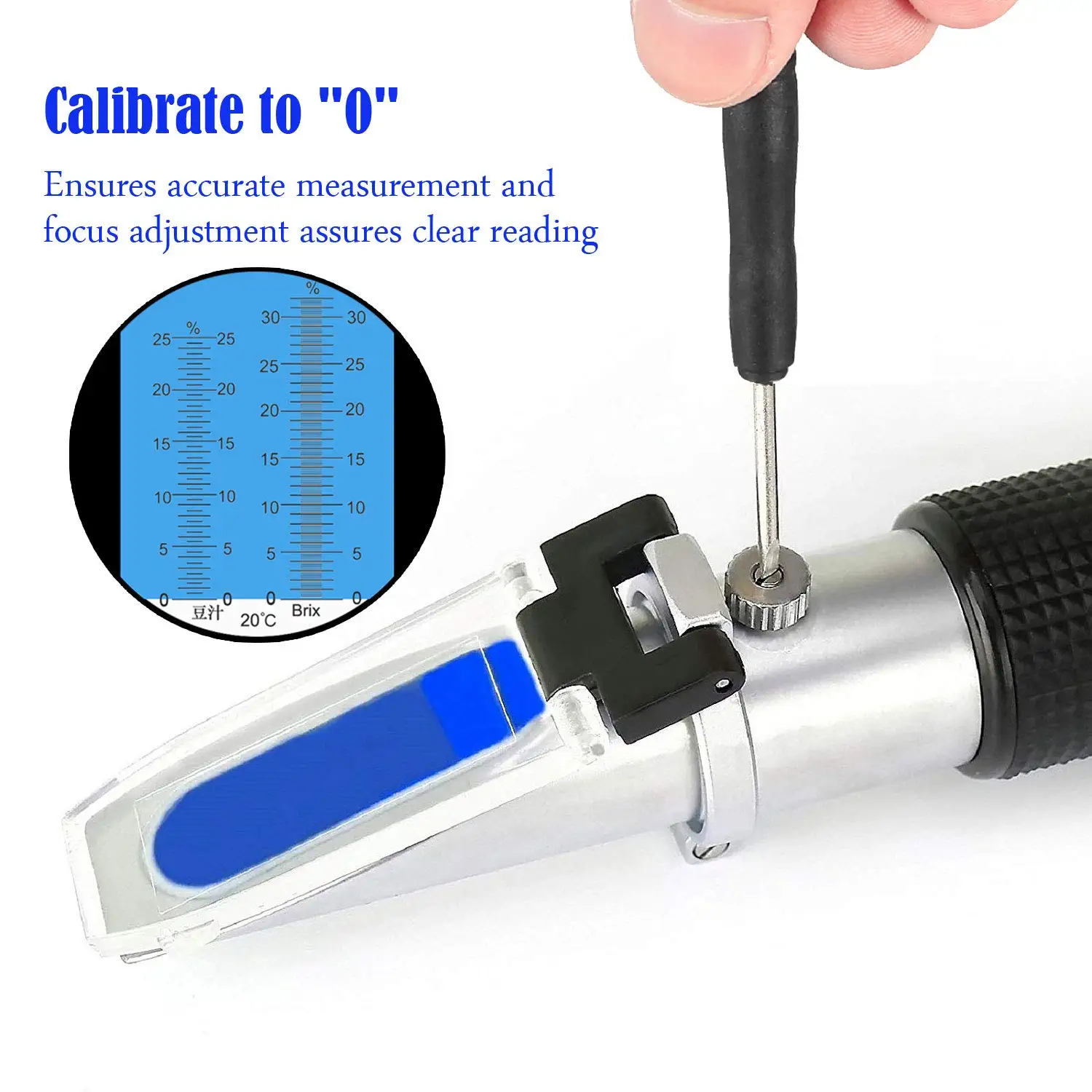 Шаги операции: 1. Откройте пластину дневного света и поместите 2 ~ 3 капли образца на основную призму. 2. Закройте пластину дневного света и аккуратно прижмите ее, чтобы вода расползалась по всей поверхности призмы без пузырьков воздуха или сухих пятен. 3. Подождите 30 секунд, чтобы образец мог прийти к температуре окружающей среды. 4. Провести день светильник пластина в направлении светильник источник и смотреть в окуляр, вы увидите во вращающемся поле с делениями по центру. 5. Возможно, вам придется сфокусировать окуляр, чтобы четко видеть градуировку. Верхняя часть поля должна быть синей, нижняя часть должна быть белой. 6. Возьмите показания, где граница синего и белого цветов пересекает градуированную шкалу. Обратите внимание: 1. Пожалуйста, измерьте содержание соевого молока перед добавлением сахара в соевое молоко. 2. При измерении после добавления сахара в соевое молоко, результат тестирования-содержание сахара в соевом молоке. 3. Очистите инструмент, используя мягкую и влажную ткань после измерения, держите его после высыхания.