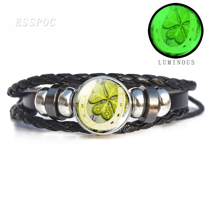 Стеклянная защелка с черной кожей является новой и красивой. Изделие может быть отсоединено и заменено защелкой, браслет можно отрегулировать, и он подходит как для мужчин, так и для женщин.Дисплей с узором