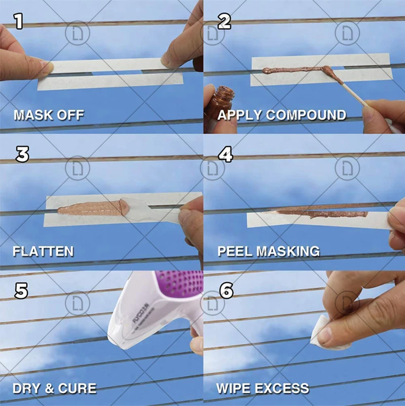 Нанесите серебряное Ремонтное соединение поверх маскировочных лент с помощью ватных палочек. Во избежание остатков твердого материала на дне или сторонах бутылки перед использованием размешать серебряное Ремонтное соединение ватными тампонами,