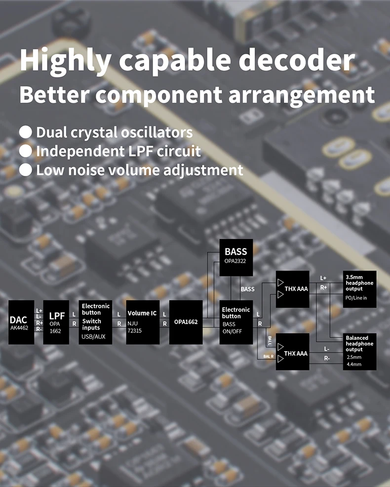 Несколько сертификатовТехнология THX AAA ampЭффективный AK4462 ЦАПXMOS XUF208768K/32B собственное DSD512 декодированиеИндикатор частоты дискретизации RGBВыход 2,5 мм/3,5 мм/4,4 мм10 часов автономной работыАналоговая ручка потенциометр громкостиВес: около 110 г (в т. Ч. Батарея)Размеры: 105 мм x 59 мм x 12,5 ммАудиовход: Порт USB Type C/3,5 ммПорт вывода наушников: стандартный порт 3,5 ммПорт сбалансированного выхода: 2,5 мм сбалансированный + 4,4 мм сбалансированныйБаланс каналов: ≤ 0,2 дБРекомендуемое Сопротивление наушников: 16 ~ 100Ω (PO); 16 ~ 300Ω (BAL)Источник питания: рекомендуется 5 В, 2 а постоянного токаЕмкость аккумулятора: 1800 мАчВремя зарядки: ≤ 2 чСрок службы батареи:USB вход: PO - 10H; BAL: 8,5 HВход AUX: BAL: 19 чПоддержка встроенного DSD: DSD64/128/256/512Тестовые наушники: наушники PO + M3 (27Ω); Наушники BAL + 32ΩМакс. Поддерживаемая Частота дискретизации: 768 кГц/32 битИспользуемые Чипы:ЦАП: AKM4462;Модуль усилителя: THX_AAA28;ЛПФ: OPA1662;XMOS: XUF208Тестовый объем на выходе 40 мВАксессуар: двойной USB Type C головной кабель, Осветляющий кабель Type C, Дата-кабель USB Type C, сумка для хранения, нескользящий коврик, линейный кабель 3,5 мм, переплетный ремень, руководство по быстрому старту, гарантийный талонПоддерживаются устройства Apple.[Примечания для телефонов на базе Android]:Замечательные толстовки, милые кошечки! Цены приемлемые, можно выбрать самому себе рисунок из предложенных. Да и можно самому заказать рисунок с... Читать отзыв полностью...