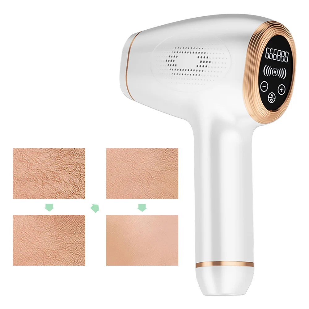【Safe & Painless】 The laser hair removal is used for both women and men. With advanced IPL laser hair removal technology, the IPL hair removal device can achieve hair removal in 8-12 weeks more gently and get flawless skin.During this process, your skin will only feel a little bit of heat and will not leave any traces on the skin. The light will only affect the hair follicles and will not harm your skin.The IPL permanent laser hair removal system is the best choice for removing extra body hair. Features: 【Easy to use & Effective 】 The permanent laser hair removal for women and men is easy to use(Refer to the 6th picture for the specific process).Using our IPL hair removal is painless and safe. 【Money Saving& Super Long Life】 Laser hair removal Upgraded to 990000 flashes. IPL hair removal system is equipped with a liquid crystal display to clearly see the remaining number. all from a small investment towards this machine. ---Hair removal instrument cycle Use eight weeks is a complete cycle: a.1-2 weeks, twice a week b.3-4 weeks, once a week c.5-8 weeks, once every two weeks. After the 8th week, consolidate once every 1-3 months. Please use it multiple times according to the growth of hair, but use it 4-6 times a month at most. The specific time interval varies from person to person. ---Steps for usage: 1.Shave the skin surface hair, clean the depilation area. Hair longer than 2 mm should be shaved, and can be used without it directly. 2. Connect the power supply (plug it in for using) tact Switch power button,start the machine 3. Tact Switch“- +” Adjust the gear,start the first gear and adjust the gear according to your skin's situation.The higher the gear, the better the depilation effect 4.Wearing product equipment goggles to avoid laser flash to the eyes. ---Hair removal time: *Parts:Hair removal time *Armpit:About one minute on each armpit *Bikini line:2 minutes on each armpit *The entire bikini area:Around 4 minutes *Whole calf:Around 15 minutes *Back: Around 15 minutes *The abdomen:Arounf 6 minutes *Labial ministry:Around 2 minutes Notes:The above depilation time is the results of our company's research and testing, the actual depilation time needs to vary from person to person ***Attention: 1.Do not use with essential oil products at the same time,ensure that the light area is clean, body surface hair as clean as possible 2.During operation, protective glasses should be wom and the blinking light should not be directy observed 3. Use with caution during pregnancy, latation, menstruation, body surface scar, diabetes, fragile skin or light-sensitive skin. 4. When depilate, the skin is mild redness belongs to normal phenomenon,usable ice compress or self - cooling. 5. Recent use of photosensitive drugs (such as:tetracyclie,sulfanilamide, etc.) is not recommended. 6. After operation, pay attention to the skin hydration and sunscreen, avoid the ultraviolet radiation, do a good job of sunshade protection when go out,daub the sunscreen cream to protect skin. 7. Avoid using make-up immediately after use. Products with high chemical composition should use plant moisturizing repair products. 8. Do not use on or near any aifcial implants, such as Slione breast implants,heart pacemakers, hypodemic needles. 9. For the frst time, it is recommended to start rom gear 1.Without damaging the skin,the higher the gear,the better the efct. 10. People with darker skin may xeiene dlayed rfxres and shoud not increase gears if in unobvious immediate rflexes. ---Cleaning and care of equipment 1. We recommend that you clean it after each use(Clean the outlet, the body is without waterproof function, can be wiped with a wet paper towel or cotton swab) To ensure the use of the machine effect and life. 2. Do not wash this product and accessories under the water faucet or in the dishwasher. 3. Do not use steel wool, abrasive cleaners (oothpaste, etc.) or crrosivity liquids (gasolie, oil, acetone, etc.) to clean products. 4. Pay atetion to genty wipe around the outlet. 5. The power adapter contains a transformer. Do not open itby yoursef to avoid danger. If the power adapter is damaged, be sure to replace the original model adapter. Packing include: 1 x machine 1 x adapter 1 x english manual 1 x scraper 1 x goggels