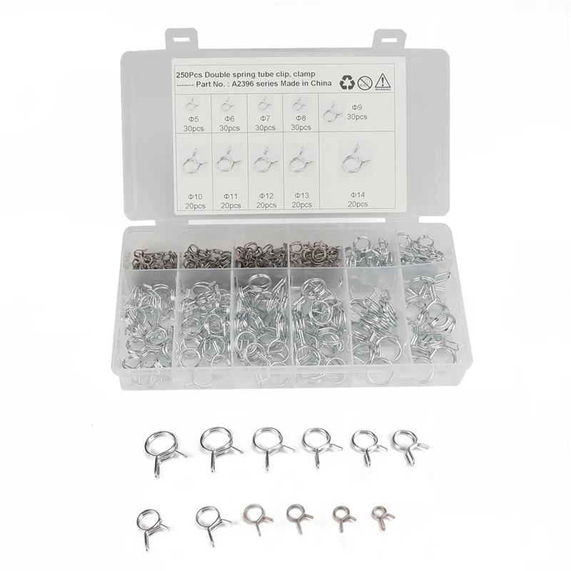 250 шт. Φ5-Φ14 двойной провод пружинный хомут топливная линия мотоцикла силиконовый шланг Пружинные зажимы оцинкованные